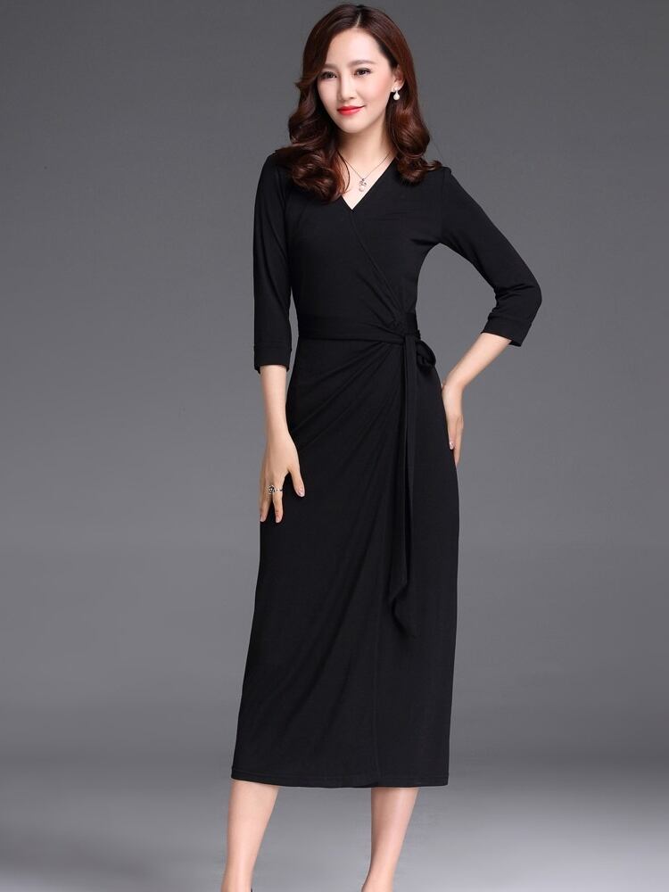 大人の落ち着いたムードを演出するカシュクールワンピース