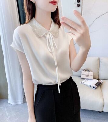 トップス ブラウス リボン 大人可愛い きれいめ シンプル おしゃれ 無地 春 夏 10代 20代 30代 40代 50代 レディース オフィス ビジネス OL ファッション S M L XL 白 ホワイト 黒 ブラック | Raforea