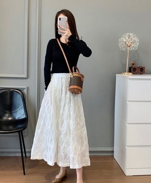 スカート ボトムス ロングスカート フレアスカート ロング ロング丈 Aライン ふわふわ かわいい 大人可愛い シンプル カジュアル 大人 上品 おしゃれ 大人可愛い 大人女子 こなれ感 ラフ ラブリー キュート 主役級 ドット柄 水玉 春 夏 10代 20代 30代 40代 レディース 女性用 オフィス OL 学生 デート お出かけ 着回し 普段使い 韓国 韓国系 ファッション コーデ スタイル モテ トレンド 流行 インスタ映え フリーサイズ 白 ホワイト 黒 ブラック | Raforea