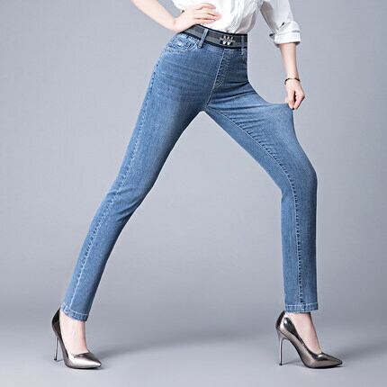 ボトムス パンツ Gパン ズボン レギパン スリム タイト 細身 ウエストマーク ハイウエスト 伸縮性 デニム かわいい こなれ感 スポーティー レディース 公園デビュー 休日 着回し 普段使い ファッション スタイル 楽ちん 美脚 脚長 ゆる サイズ | Raforea