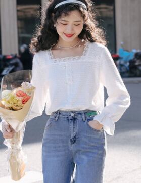 トップス Tシャツ カットソー 白シャツ 白トップス 袖あり 長袖 ボリューム袖 フレアスリーブ スクエアネック レース 刺繍 チュール シフォン ケーブルニット 透け感 サマーニット かわいい きれいめ シンプル 上品 お洒落 大人可愛い ガーリー 小花柄 春 夏 レディース 通勤 学生 デート お出かけ 女子会 着回し 普段使い 韓国 韓国系 オルチャン ファッション 白 ホワイト | Raforea