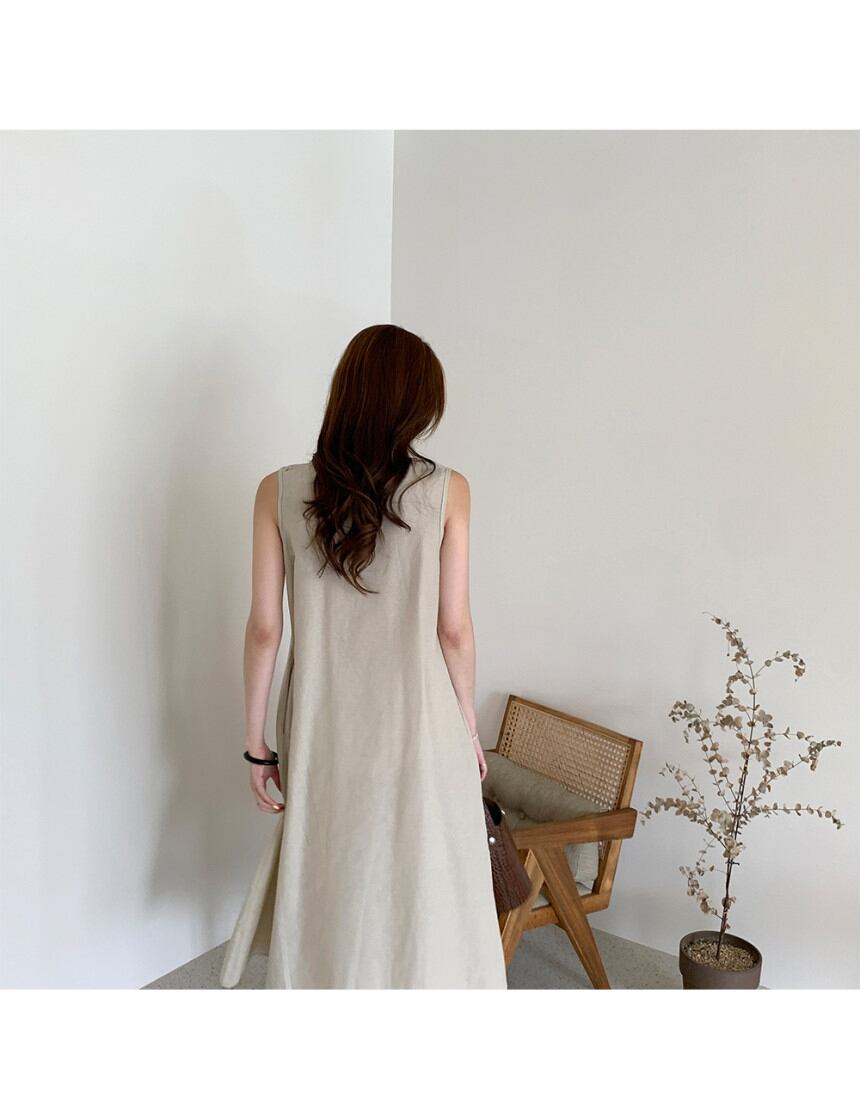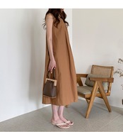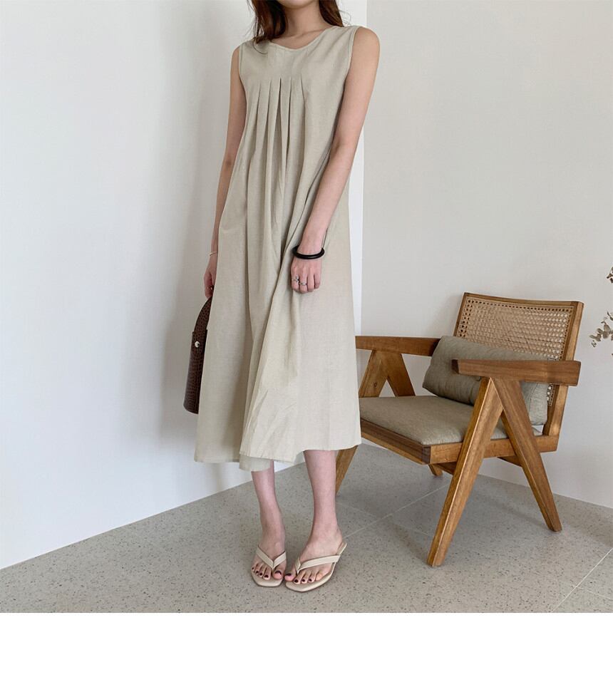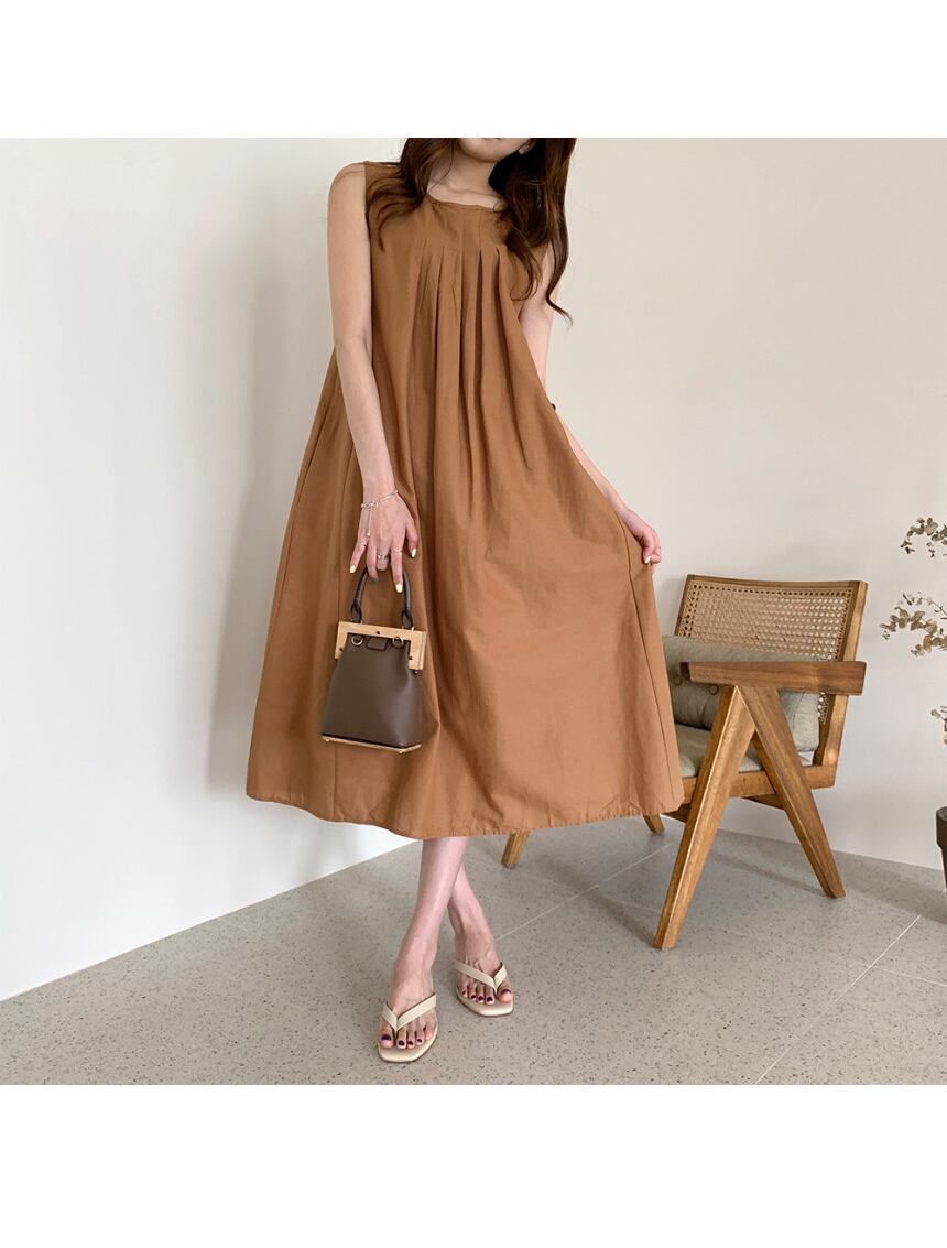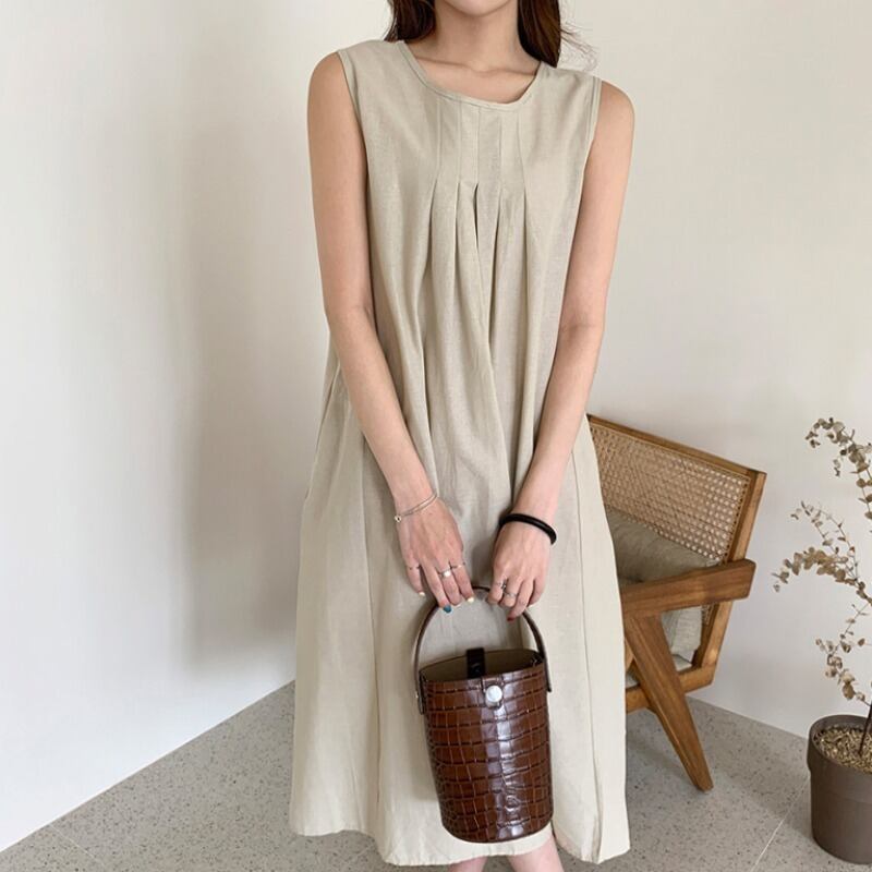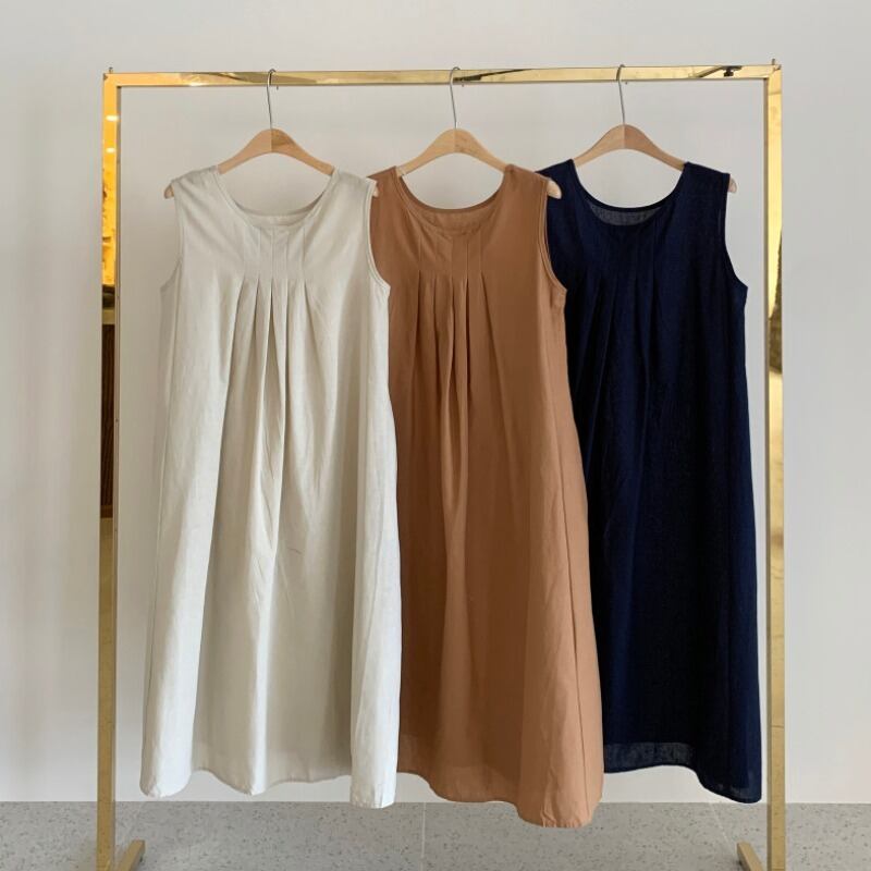 ワンピース シャツワンピース ミディアム丈 袖なし ノースリーブ ラウンドネック Aライン 大人可愛い シンプル カジュアル 大人 上品 おしゃれ お洒落 アジアン 大人可愛い 大人女子 ラフ 抜け感 無地 春 夏 10代 20代 30代 40代 レディース 女性用 OL 学生 着回し 普段使い ファッション コーデ スタイル 楽ちん モテ 体系カバー フリーサイズ 色展開 ネイビー アプリコット | Raforea