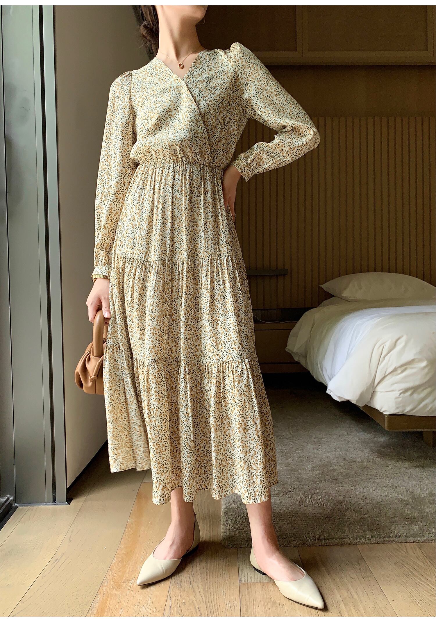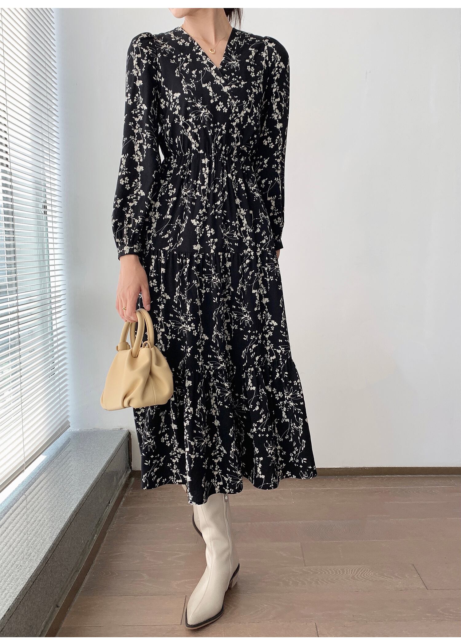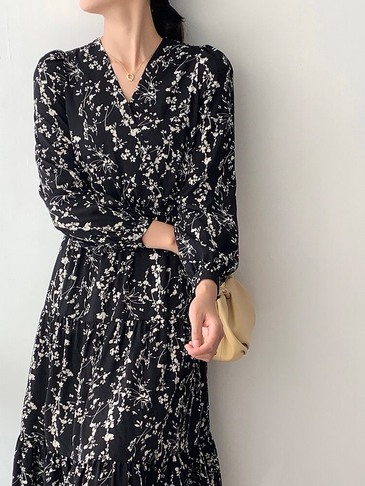 ワンピース 膝下 マキシ丈 9分丈 長袖 Vネック セミフレア シフォン 柄 フラワー オールシーズン ホワイト ブラック かわいい 大人可愛い きれいめ 大人可愛い 大人女子 こなれ感 ラブリー キュート ガーリー 柄 20代 30代 40代 レディース 女性用 学生 デート お出かけ 公園デビュー 女子会 着回し 普段使い ファッション コーデ 新作 定番 プチプラ トレンド 流行 インスタ映え シンプル おしゃれ お洒落 個性的 主役級 存在感 抜け感 ファッション コーデ モテ | Raforea