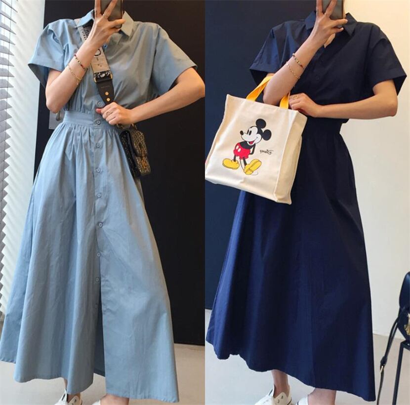 ワンピース シャツワンピース ワンピドレス ロング ロング丈 袖あり 半袖 Aライン ウエストマーク 前開き かわいい 大人可愛い きれいめ シンプル カジュアル 大人 上品 おしゃれ お洒落 大人可愛い 大人女子 こなれ感 ラフ 主役級 存在感 抜け感 無地 春 夏 10代 20代 30代 40代 レディース 女性用 OL 学生 デート お出かけ 着回し 普段使い 韓国 韓国系 ファッション コーデ スタイル モテ インスタ映え フリーサイズ 青 ブルー ベージュ 水色 ネイビー