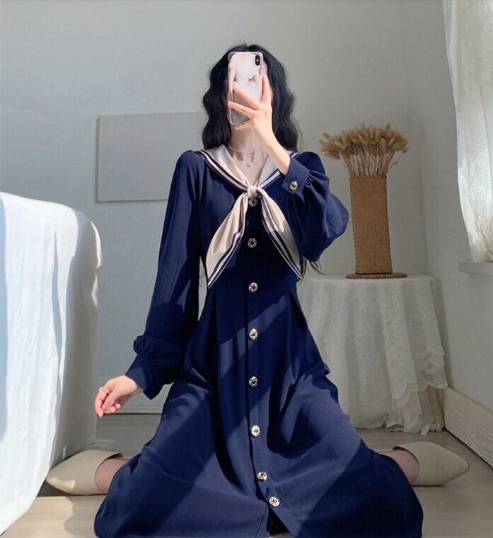 トレンドのセーラーカラーがポイントのワンピース
