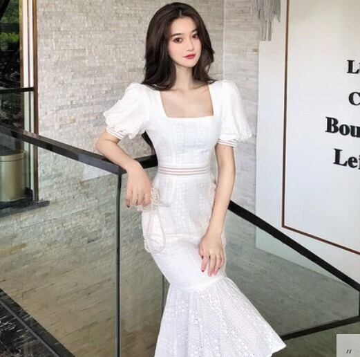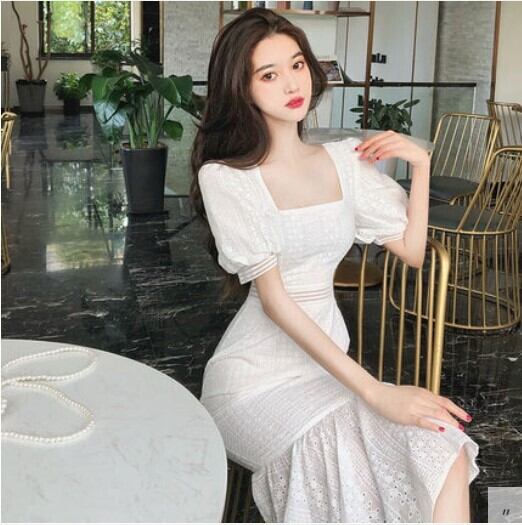 ワンピース ワンピドレス ロング ロング丈 袖あり 半袖 パフスリーブ スクエアネック スリム かわいい 大人可愛い きれいめ シンプル 大人 上品 おしゃれ お洒落 ラブリー キュート エレガント 主役級 存在感 柄 春 夏 誕生日 入園式 卒業式 卒園式 謝恩会 二次会 10代 20代 30代 レディース 女性用 パーティー イベント モテ インスタ映え S M L 白 ホワイト | Raforea