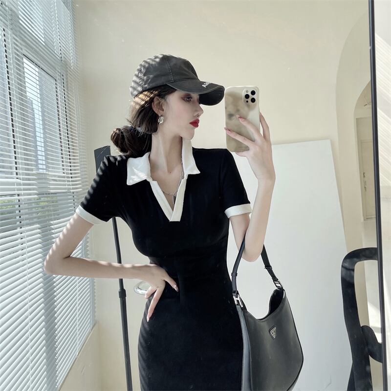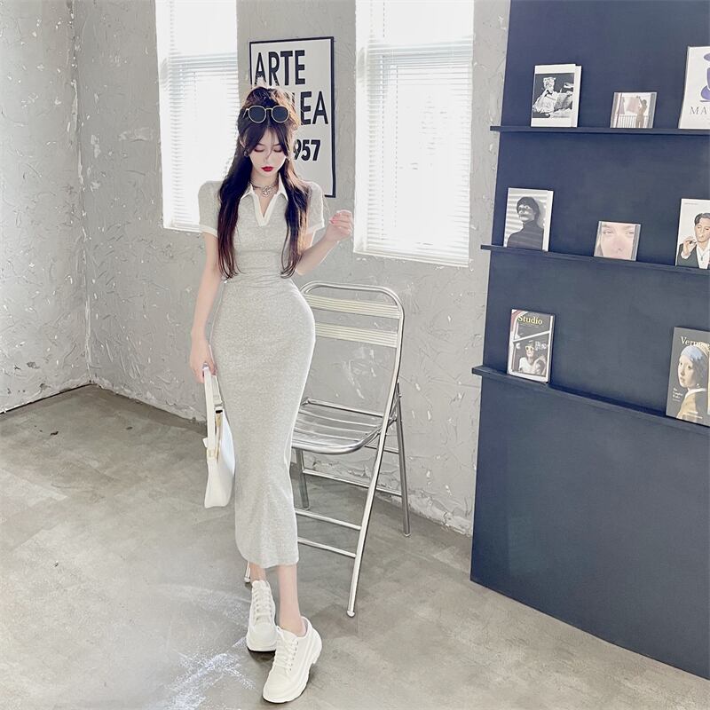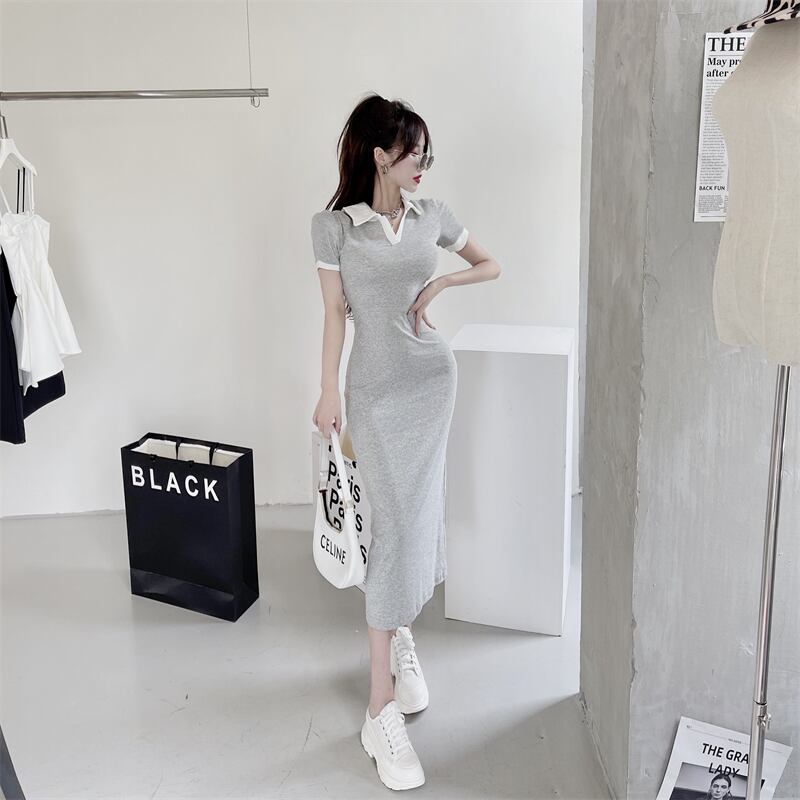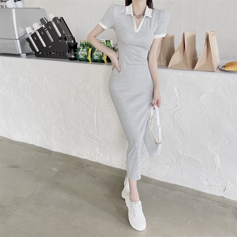 ワンピース シャツワンピース ミディアム丈 袖あり 半袖 Vネック 襟付き スリム タイト かわいい 大人可愛い シンプル カジュアル 大人 おしゃれ お洒落 かっこいい 大人可愛い 大人女子 こなれ感 ラフ スポーティー キュート 無地 春 夏 10代 20代 30代 レディース 女性用 OL 通学 デート お出かけ 旅行 着回し 普段使い 双子 韓国 韓国系 ファッション コーデ スタイル モテ S M L 黒 ブラック 灰色 グレー | Raforea