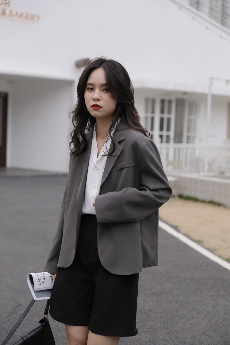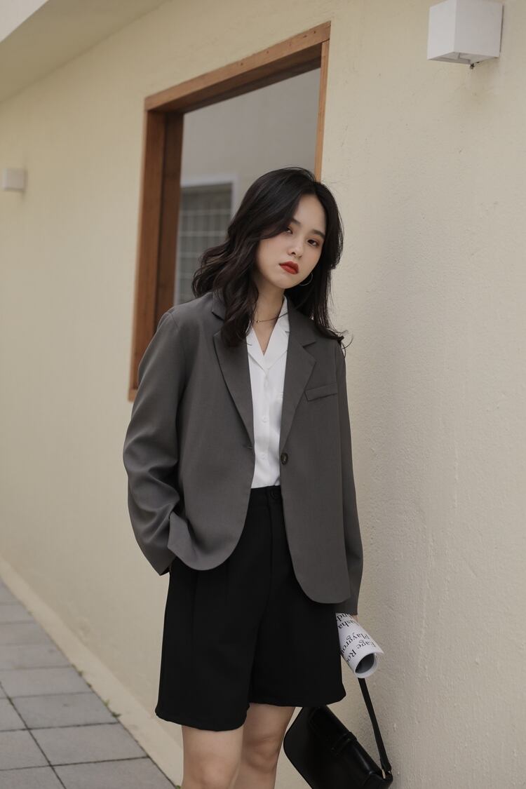 トップス アウター ジャケット 上着 スーツ 袖あり 長袖 襟付き 前開き きれいめ シンプル 大人 上品 おしゃれ お洒落 かっこいい レトロ 大人女子 こなれ感 ラフ メンズライク マニッシュ クール フォーマル 無地 オールシーズン シーズンレス 20代 30代 40代 レディース 女性用 ビジネス OL 学生 着回し 普段使い ファッション コーデ スタイル モテ XS 小さいサイズ 黒 ブラック 灰色 グレー | Raforea
