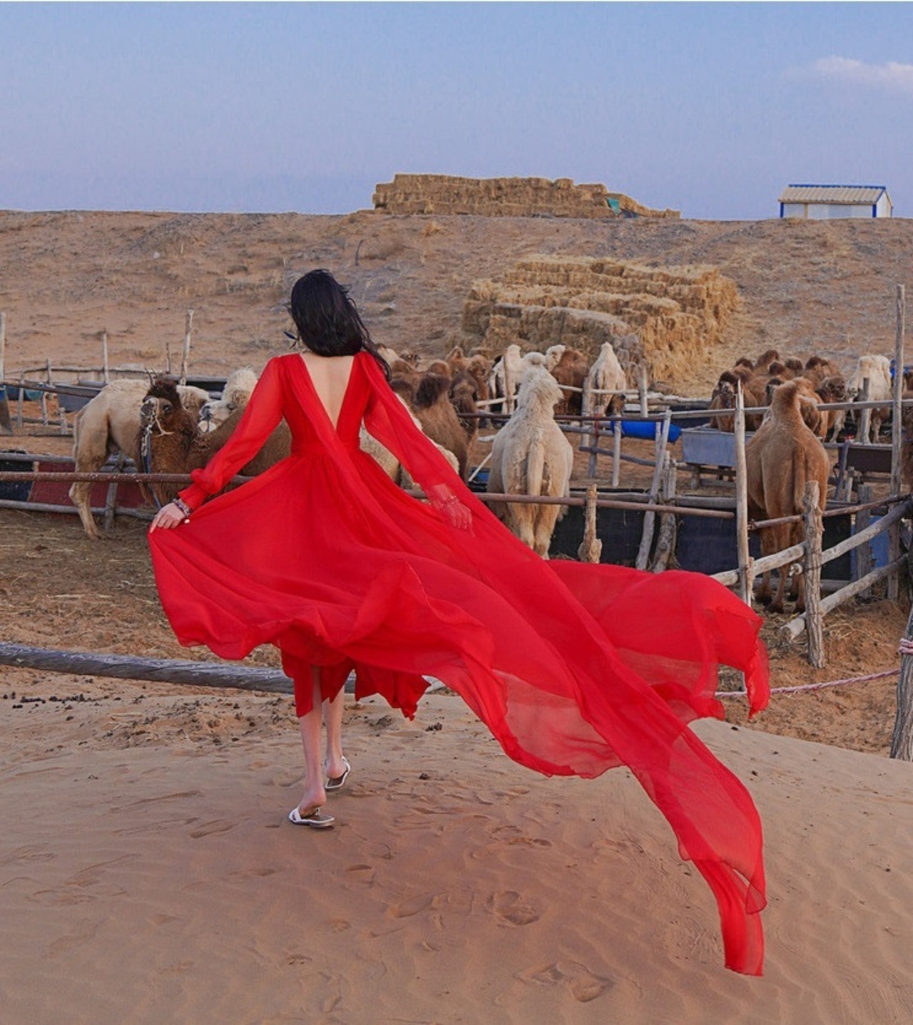 ドレス 衣装 ワンピース カラードレス ステージドレス 舞台衣装 舞台ドレス ロング ロング丈 袖あり 長袖 Vネック ウエストマーク バックシャン バックコンシャス 大人可愛い 大人 おしゃれ お洒落 アジアン エスニック エキゾチック 大人可愛い 個性的 エレガント 主役級 存在感 ゴージャス 華やか エスニック エキゾチック アジアン 無地 10代 20代 30代 レディース 女性用 シーズンレス S M L XL 赤 レッド | Raforea
