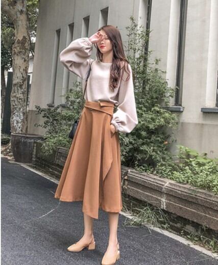 ワンピース ワンピドレス ミディアム丈 袖あり 長袖 ボリューム袖 ラウンドネック アシンメトリー 切り替えデザイン ドッキング ハイウエスト かわいい 大人可愛い きれいめ 大人 上品 おしゃれ お洒落 大人可愛い 大人女子 こなれ感 エレガント 無地 春 秋 10代 20代 30代 40代 レディース 女性用 OL 学生 デート お出かけ 普段使い 韓国 韓国系 ファッション コーデ スタイル モテ S M L XL ベージュ | Raforea