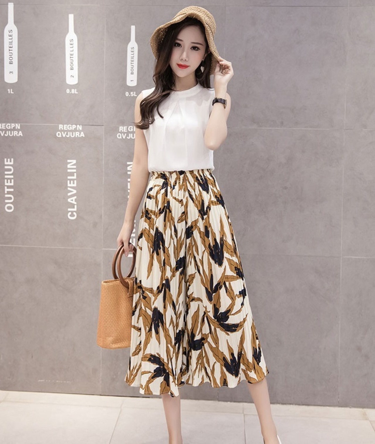 ボトムス パンツ ワイドパンツ ガウチョパンツ ミディアム丈 ワイド ガウチョ プリーツ シフォン ハイウエスト かわいい 大人可愛い シンプル カジュアル おしゃれ お洒落 ラブリー キュート 無地 柄 ドット柄 水玉 ストライプ リーフ柄 春 夏 10代 20代 30代 40代 レディース 女性用 着回し 普段使い 楽ちん 定番 S M L XL 2XL 大きいサイズ 白 ホワイト 黒 ブラック 青 ブルー | Raforea