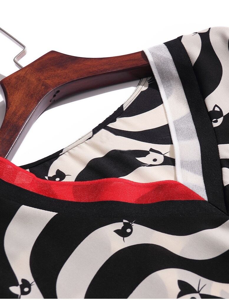 猫のプリントが散りばめられたゆったりトップス