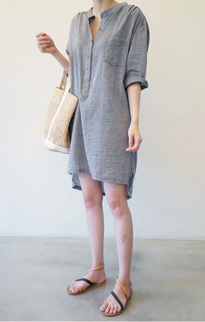 ワンピース シャツワンピース 膝上 袖あり 長袖 ラウンドネック スタンドカラー かわいい 大人可愛い シンプル カジュアル 大人 おしゃれ お洒落 大人可愛い 大人女子 こなれ感 ラフ ルーズ 抜け感 ストライプ 春 夏 10代 20代 30代 レディース 女性用 着回し 普段使い 重ね着 楽ちん モテ S M L XL 2XL 3XL 大きいサイズ ビッグサイズ 灰色 グレー 水色 | Raforea