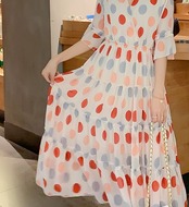 ワンピース フレアワンピース ティアードワンピース ワンピドレス ミディアム丈 袖あり 半袖 五分袖 フレアスリーブ Vネック 襟なし フレア Aライン シフォン フリル ウエストマーク かわいい 大人可愛い きれいめ カジュアル お洒落 大人可愛い ラブリー キュート ガーリー 個性的 エレガント 主役級 抜け感 柄 ドット柄 水玉 プリント 春 夏 10代 20代 30代 レディース 学生 デート お出かけ 女子会 休日 パーティー リゾート 旅行 韓国系 オルチャン ファッション コーデ | Raforea