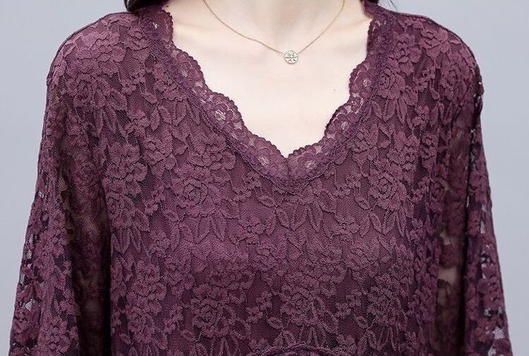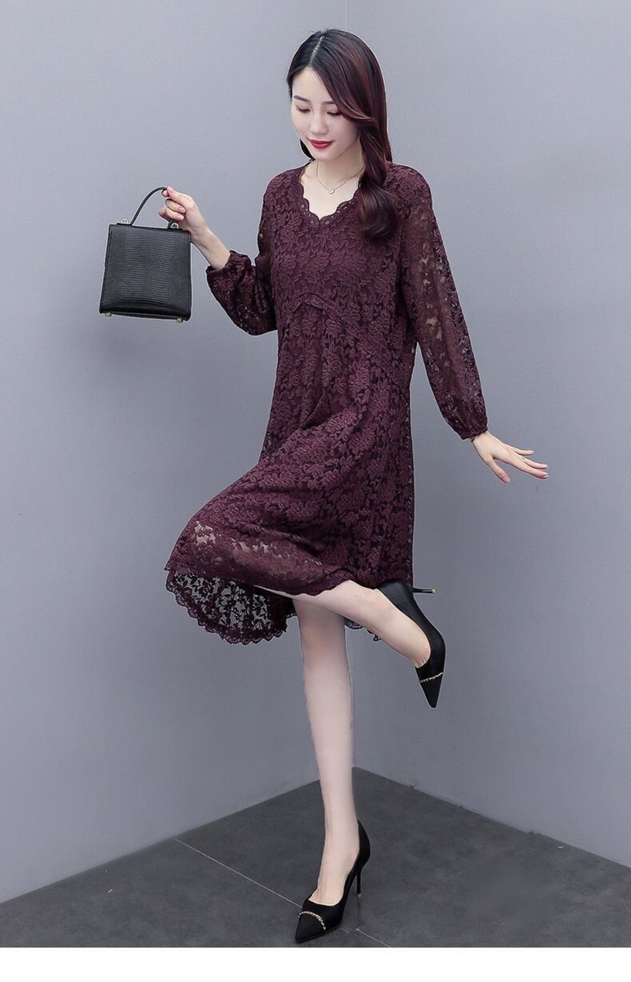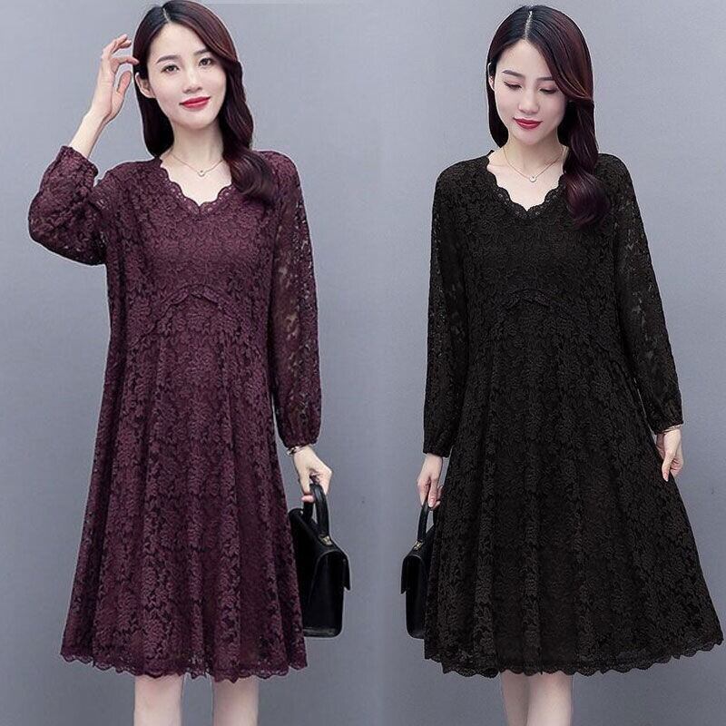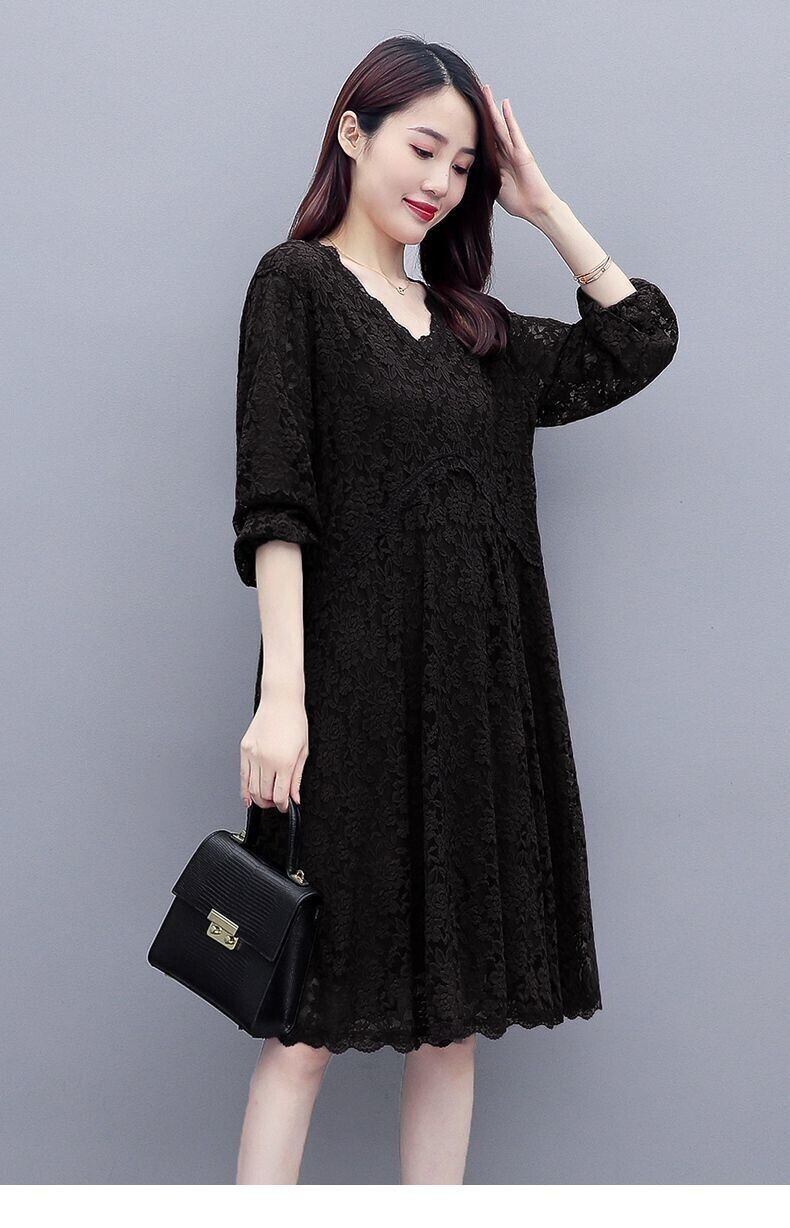 ワンピース レース カーディガン フレアワンピース ひざ丈 膝下 袖あり 長袖 パフスリーブ Vネック Aライン レース クロシェ 大人可愛い アジアン 大人女子 モダン 小花柄 春 夏 秋 30代 40代 50代 お出かけ 休日 旅行 普段使い 楽ちん サイズ M L XL 2XL 3XL 4XL 5XL ゆる サイズ 色展開 ブラック フクシア | Raforea