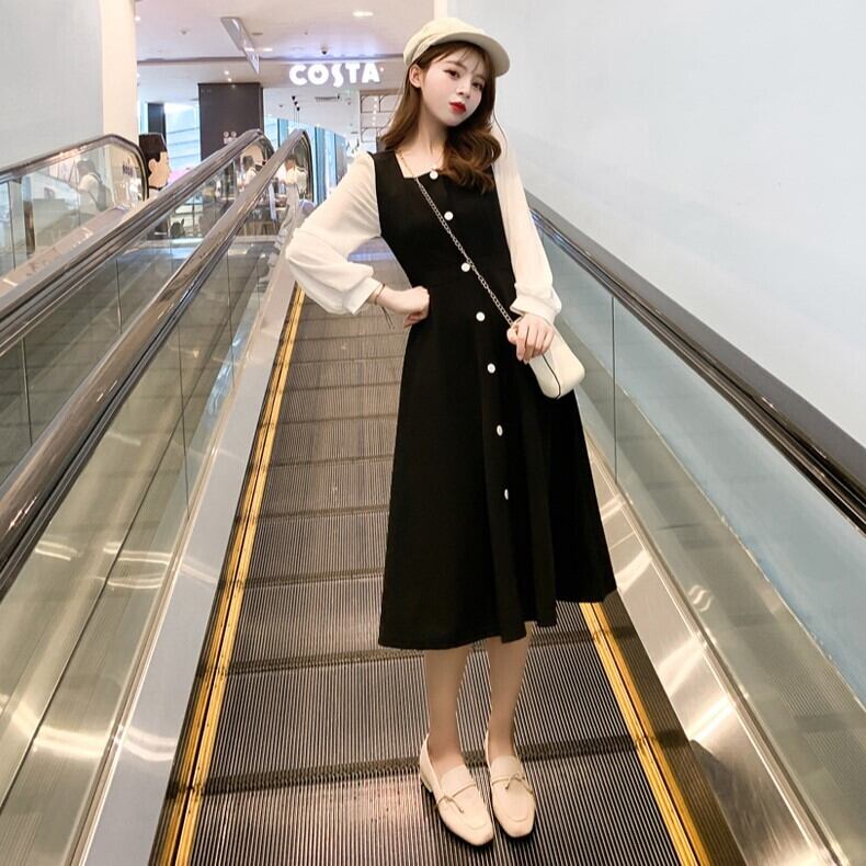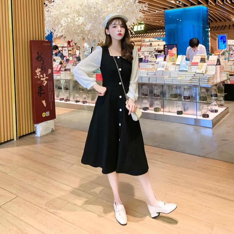 ワンピース ロングスカート フレアスカート フレアワンピース ワンピドレス 膝下 ミモレ丈 ロング丈 袖あり 長袖 スクエアネック 襟なし フレア Aライン シフォン ハイウエスト 薄手 大人可愛い きれいめ 上品 おしゃれ レトロ 無地 春 夏 20代 レディース マタニティ OL 通勤 通学 デート お出かけ 休日 普段使い 楽ちん 体系カバー 新作 トレンド L XL 2XL 3XL 4XL 大きいサイズ ゆったり 黒 ブラック | Raforea