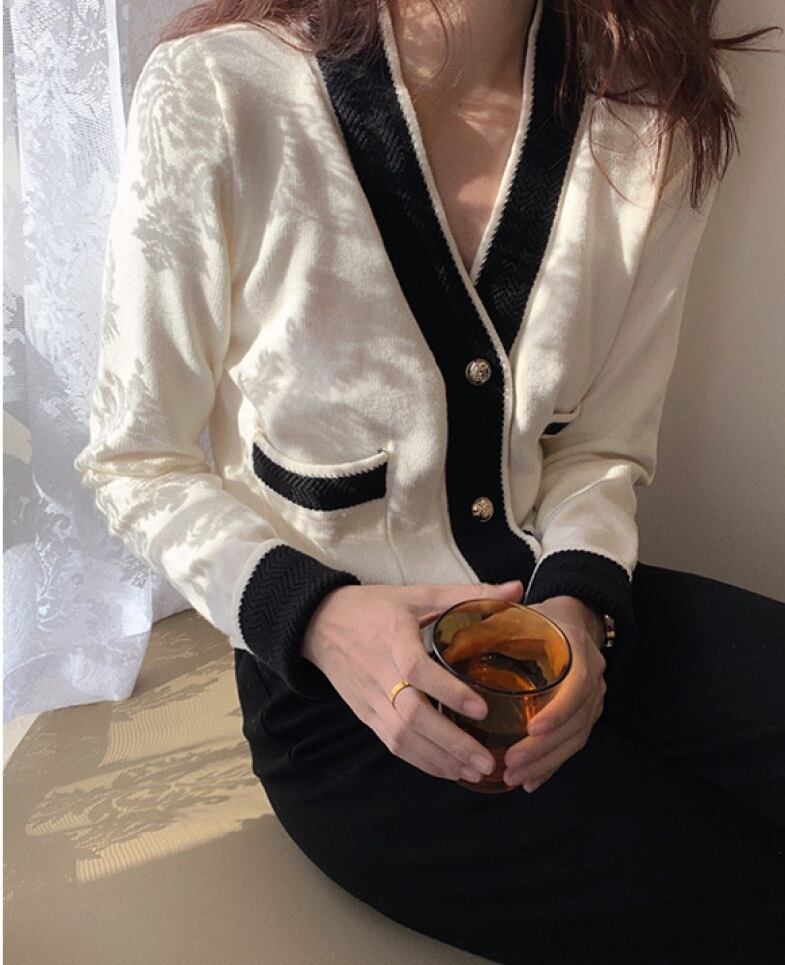 トップス カーディガン ショート ショート丈 袖あり 長袖 Vネック 切り替えデザイン 前開き かわいい 大人可愛い きれいめ シンプル カジュアル 大人 上品 おしゃれ お洒落 レトロ 大人可愛い 大人女子 こなれ感 個性的 エレガント モダン 10代 20代 30代 40代 レディース OL 学生 デート お出かけ 着回し 普段使い 重ね着 韓国 韓国系 モテ インスタ映え フリーサイズ 白 ホワイト 黒 ブラック | Raforea