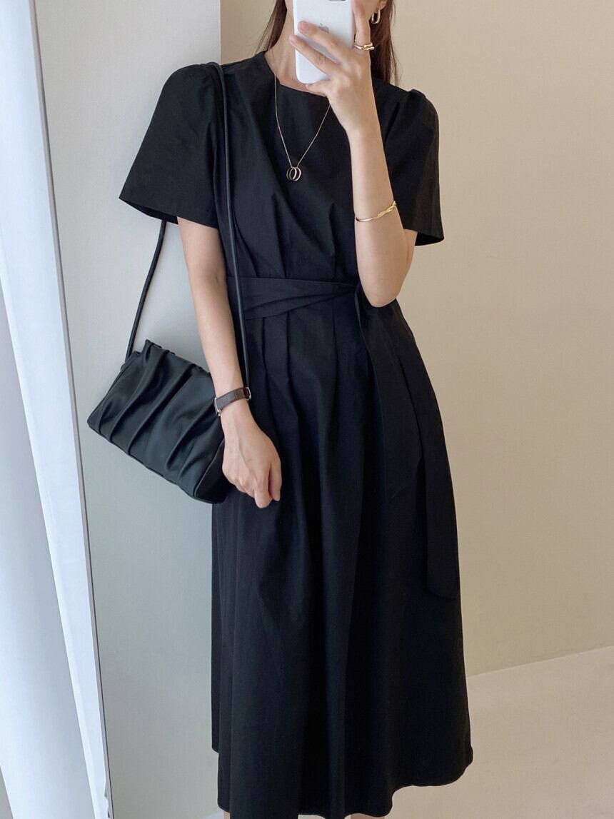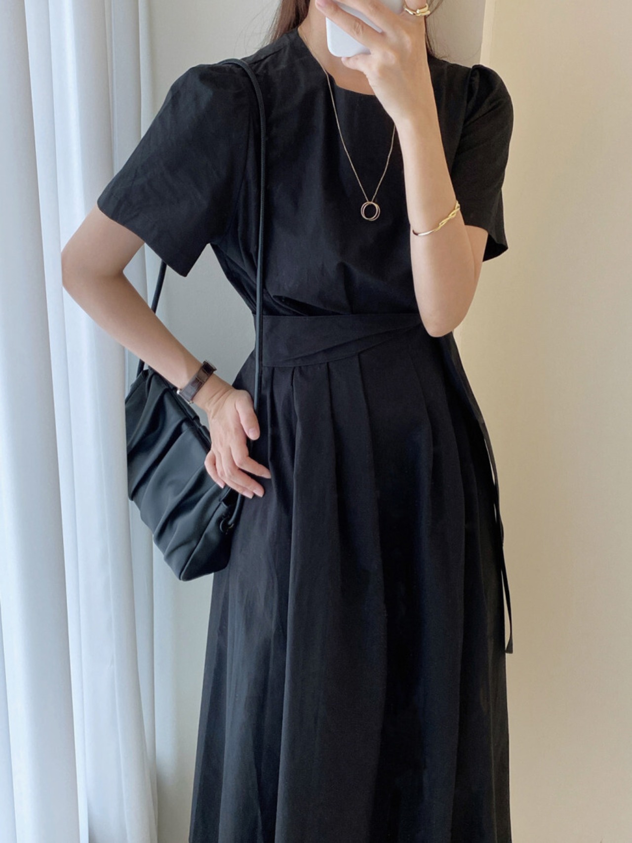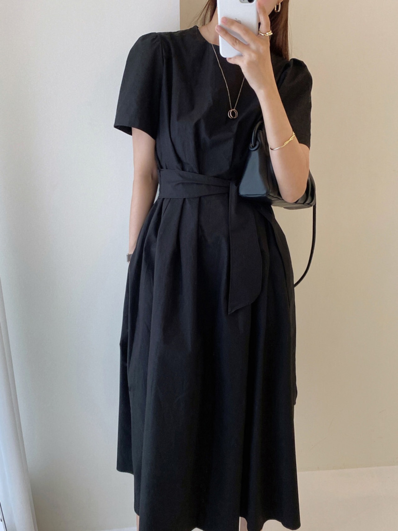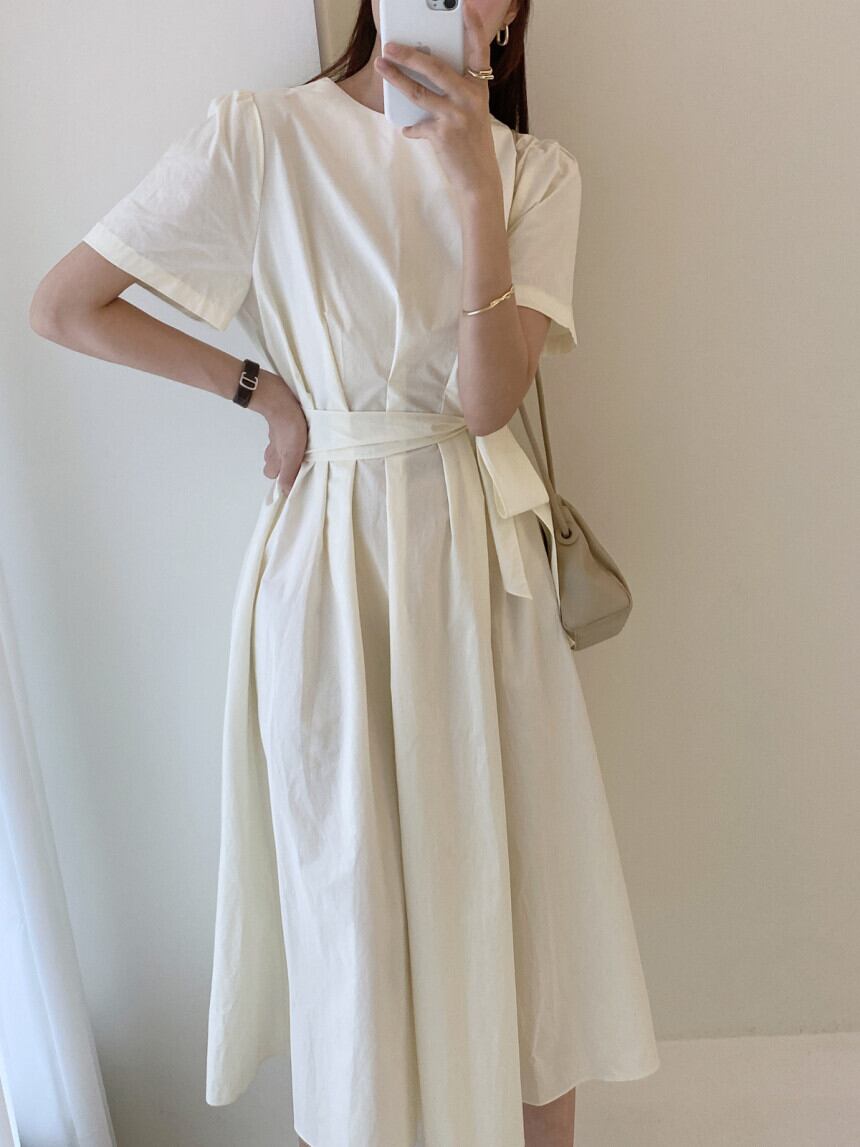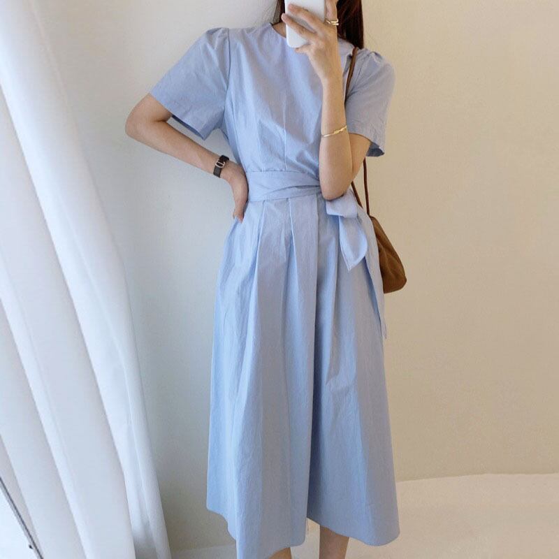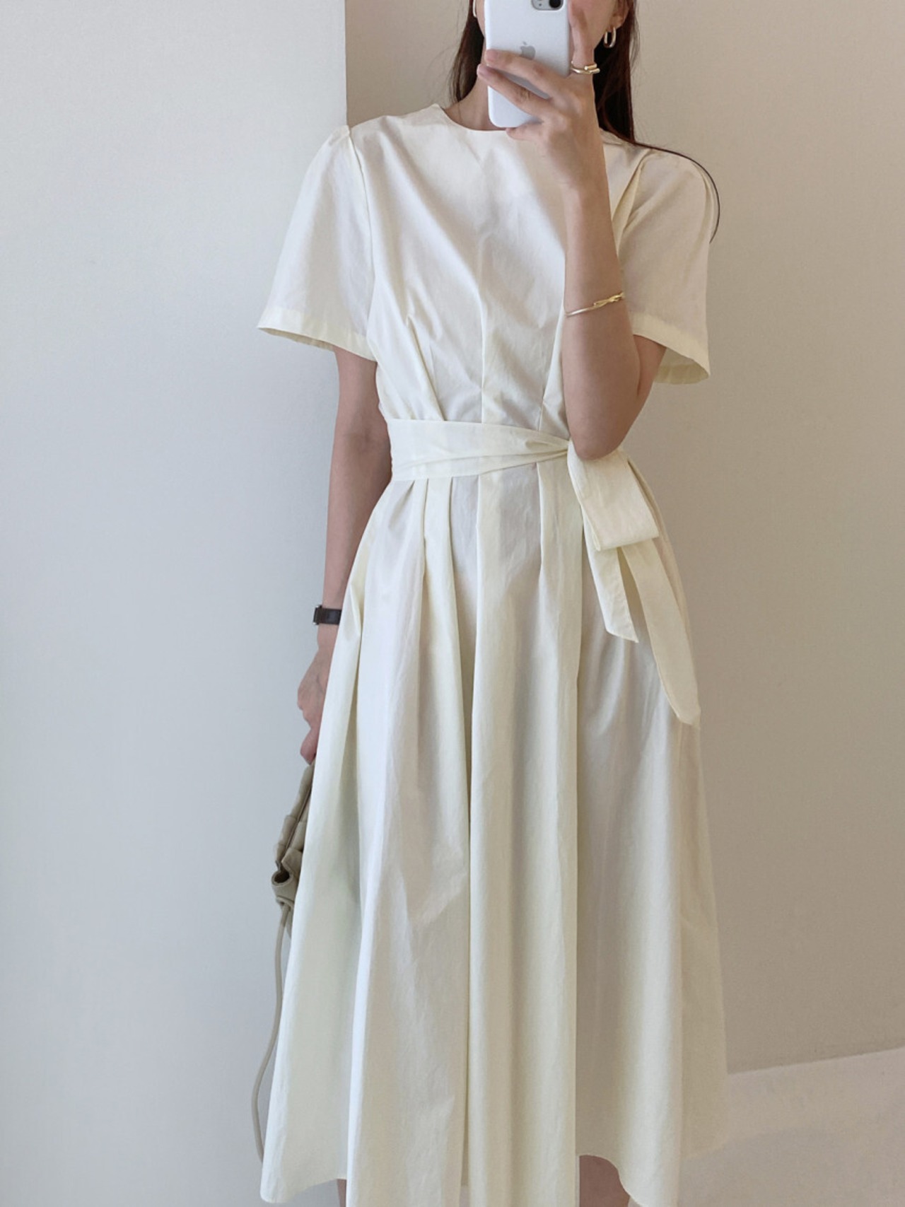 ワンピース シャツワンピース ミディアム丈 袖あり 半袖 ラウンドネック リボン ウエストマーク ウエストリボン ファスナー かわいい 大人可愛い きれいめ シンプル カジュアル 大人 上品 おしゃれ お洒落 大人可愛い 大人女子 こなれ感 ラフ キュート ガーリー 無地 春 夏 10代 20代 30代 レディース 女性用 OL 学生 デート お出かけ 女子会 海 モテ フリーサイズ 白 ホワイト 黒 ブラック ライトブルー | Raforea