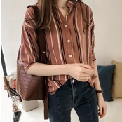 トップス シャツ ブラウス 袖あり 7分袖 七分袖 襟付き スタンドカラー 大人可愛い きれいめ シンプル カジュアル 大人 上品 お洒落 大人可愛い 大人女子 こなれ感 ラフ マニッシュ クール 抜け感 柄 ストライプ シマ シーズンレス レディース 通勤 学生 通学 デート お出かけ 女子会 休日 着回し 普段使い 韓国系 オルチャン トレンド 色展開 大人カラー | Raforea