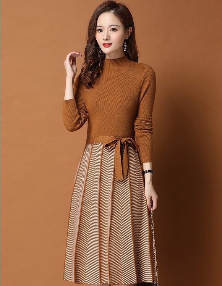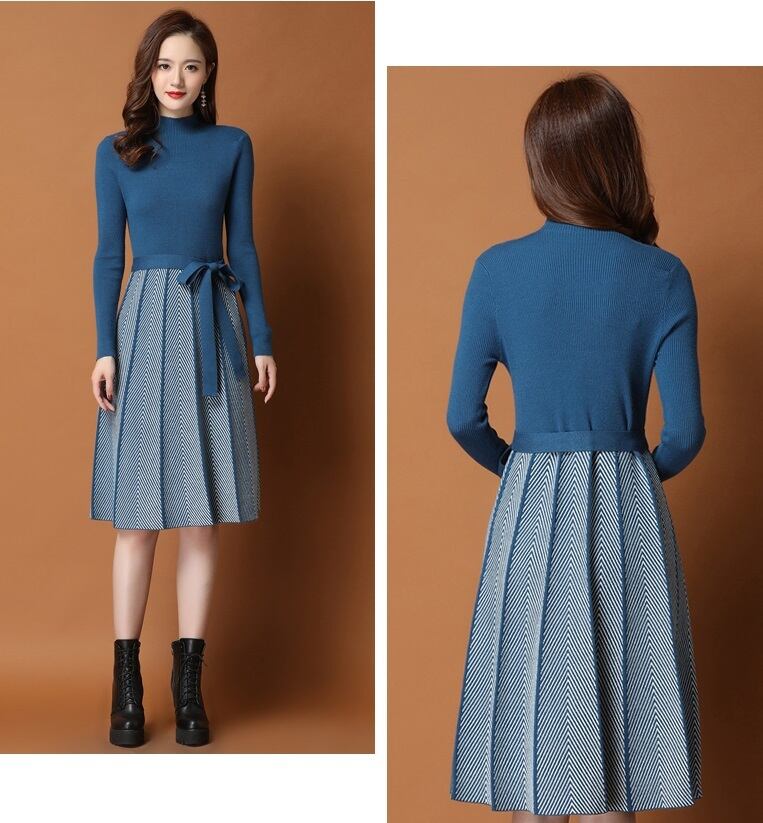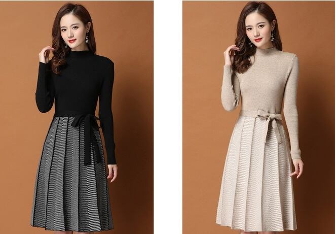 ワンピース ワンピドレス ミディアム丈 袖あり 長袖 ハイネック タートルネック プリーツ ウエストマーク ウエストリボン 切り替えデザイン ニット かわいい 大人可愛い 大人 上品 おしゃれ お洒落 レトロ 大人可愛い 大人女子 こなれ感 ラブリー キュート 秋 冬 10代 20代 30代 レディース 女性用 OL 学生 デート お出かけ 普段使い お揃い 韓国 韓国系 モテ インスタ映え S M L XL 2XL 3XL 黒 ブラック 青 ブルー 茶色 ブラウン ベージュ | Raforea