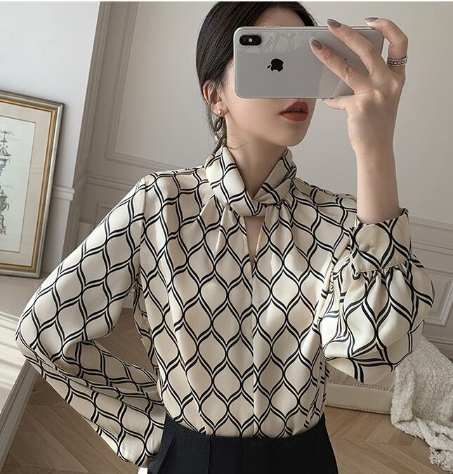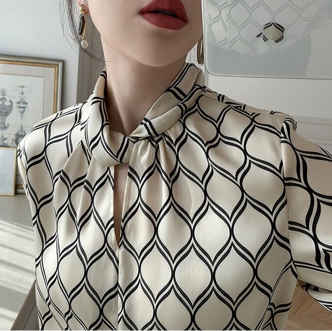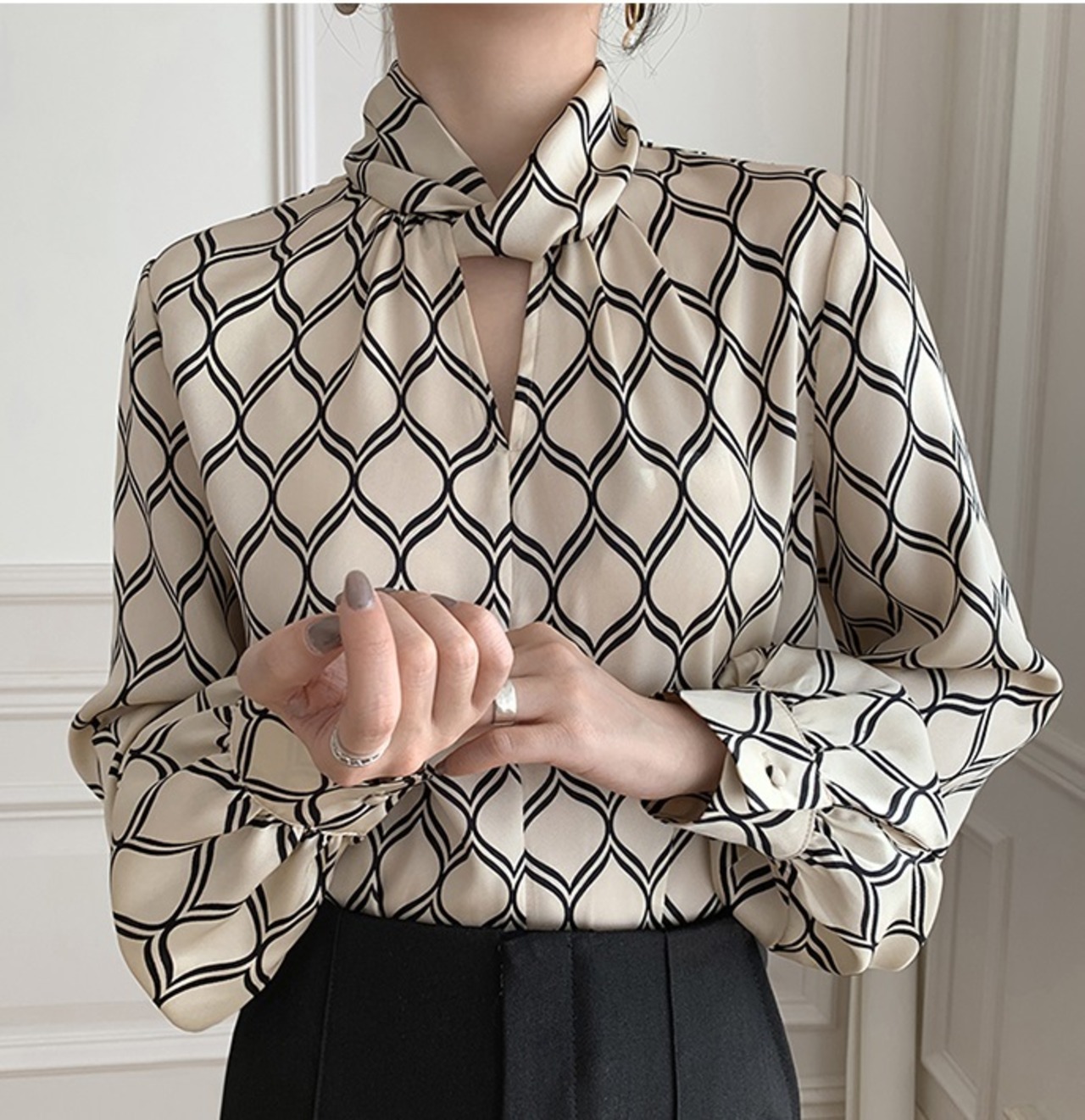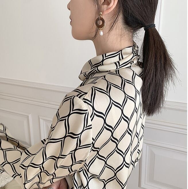 トップス シャツ ブラウス 袖あり 長袖 スタンドカラー 大人可愛い きれいめ 大人 上品 おしゃれ お洒落 かっこいい レトロ 大人可愛い 大人女子 こなれ感 個性的 クール エレガント 主役級 存在感 とろみ感 柄 春 夏 10代 20代 30代 レディース 女性用 OL デート お出かけ 韓国 韓国系 ファッション コーデ スタイル モテ インスタ映え S M L ベージュ | Raforea