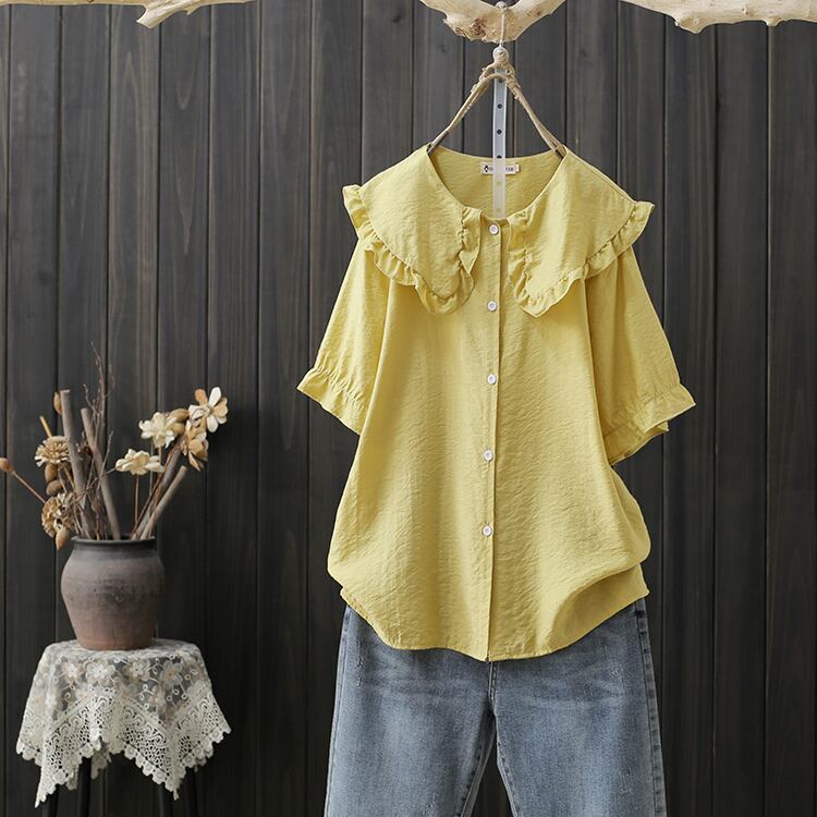 トップス シャツ ブラウス 白シャツ 白トップス 袖あり 半袖 ラウンドネック 襟付き フリル かわいい 大人可愛い シンプル カジュアル 大人 おしゃれ お洒落 大人可愛い 大人女子 こなれ感 ラフ ラブリー キュート 無地 春 夏 10代 20代 30代 レディース 女性用 着回し 普段使い 楽ちん モテ トレンド 流行 インスタ映え 2XL 3XL 4XL 5XL 大きいサイズ 大きい ビッグサイズ ゆったり ゆる 白 ホワイト 青 ブルー 黄色 イエロー | Raforea