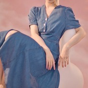 おしゃれ度抜群、デニム素材のAラインワンピース。