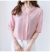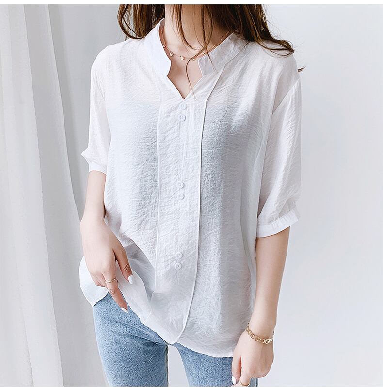 トップス シャツ ブラウス 白トップス 袖あり 半袖 5分袖 スタンドカラー レース バックシャン バックコンシャス 前開き 透け感 シースルー かわいい 大人可愛い シンプル 大人 上品 おしゃれ お洒落 大人可愛い 大人女子 こなれ感 セクシー 主役級 存在感 抜け感 春 夏 10代 20代 30代 レディース 女性用 着回し 普段使い 重ね着 韓国 韓国系 モテ インスタ映え S M L XL 2XL 3XL 4XL 5XL 大きいサイズ ビッグサイズ カラバリ | Raforea