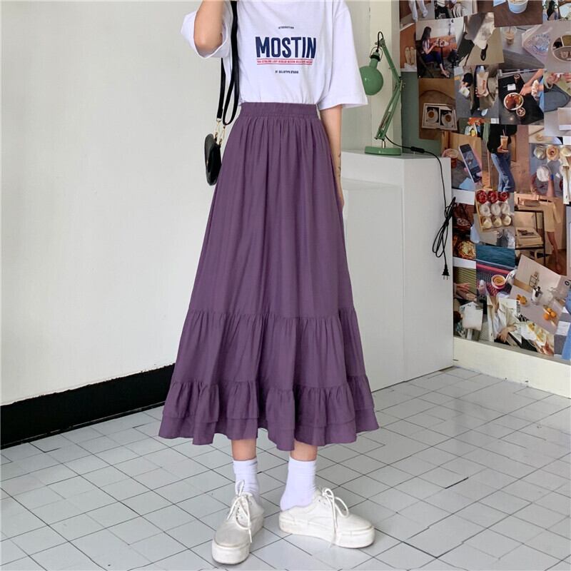 ティアードスカート スカート ボトムス ロングスカート ロング ロング丈 Aライン フリル ウエストゴム かわいい 大人可愛い シンプル カジュアル 大人 おしゃれ お洒落 大人可愛い 大人女子 こなれ感 ラフ ラブリー キュート 無地 春 夏 10代 20代 30代 レディース 女性用 デート お出かけ 着回し 普段使い 韓国 韓国系 ファッション コーデ スタイル モテ インスタ映え フリーサイズ 白 ホワイト 黒 ブラック 紫 パープル | Raforea