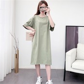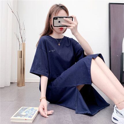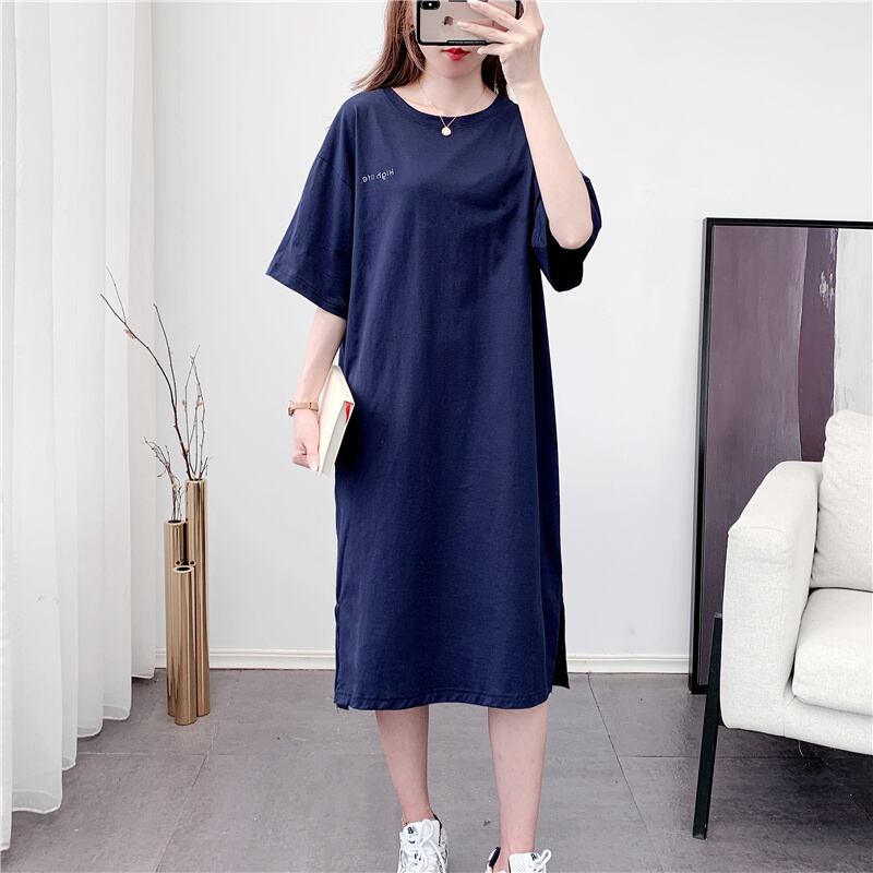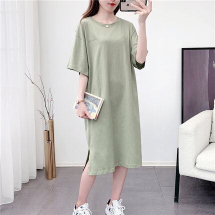 ワンピース Tシャツ ビッグT 膝下 ミディアム丈 袖あり 半袖 5分袖 ドロップショルダー Uネック 襟なし Iライン スリット サイドスリット 大人可愛い シンプル カジュアル お洒落 大人可愛い こなれ感 ラフ メンズライク ルーズ 抜け感 プリント 学生 通学 女子会 休日 アウトドア 着回し 普段使い 重ね着 体系カバー トレンド 色展開 | Raforea