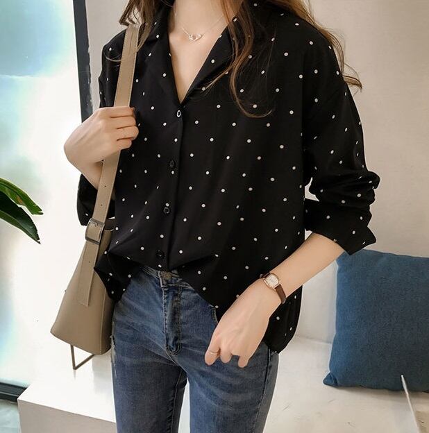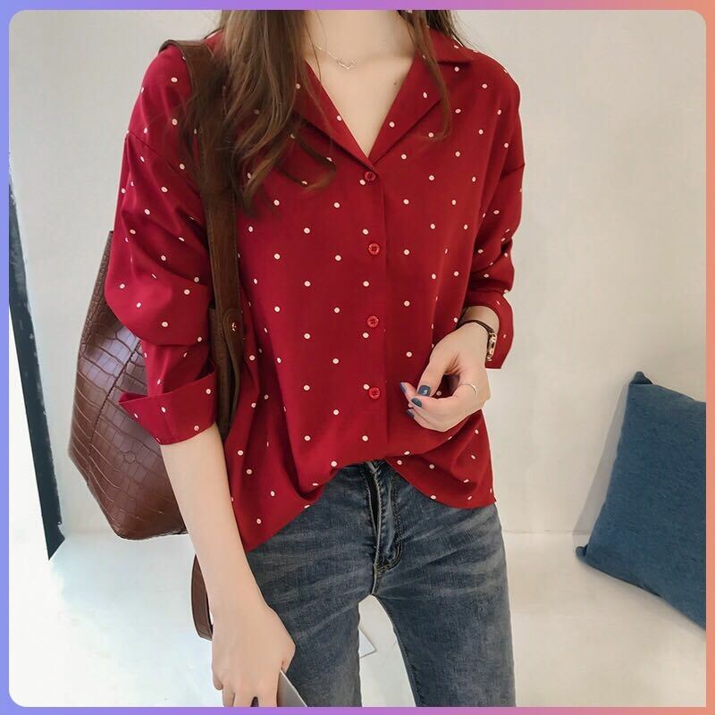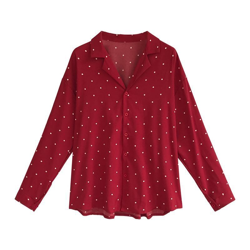 トップス シャツ ブラウス 袖あり 長袖 Vネック 襟付き 前開き かわいい 大人可愛い カジュアル 大人 おしゃれ お洒落 レトロ 大人可愛い 大人女子 こなれ感 キュート とろみ感 抜け感 ドット柄 水玉 10代 20代 30代 レディース 女性用 着回し 普段使い 韓国 韓国系 ファッション コーデ スタイル モテ インスタ映え M L XL 2XL 3XL 4XL 大きいサイズ 黒 ブラック 赤 レッド | Raforea