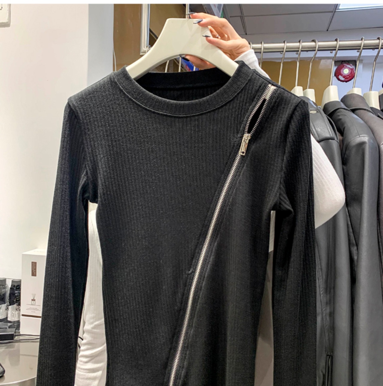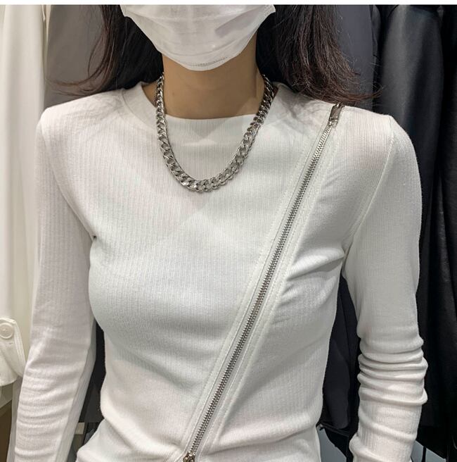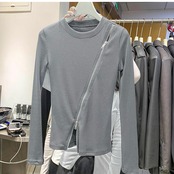 トップス カットソー ニットソー 袖あり 長袖 ラウンドネック ファスナー リブニット 薄手 シンプル カジュアル おしゃれ お洒落 かっこいい 大人可愛い 大人女子 こなれ感 ラフ 個性的 クール 春 秋 10代 20代 30代 レディース 女性用 OL 学生 着回し 普段使い 韓国 韓国系 ファッション コーデ スタイル インスタ映え フリーサイズ 白 ホワイト 黒 ブラック 灰色 グレー | Raforea