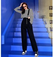 スタイルを良く見せる肩紐のサロペット