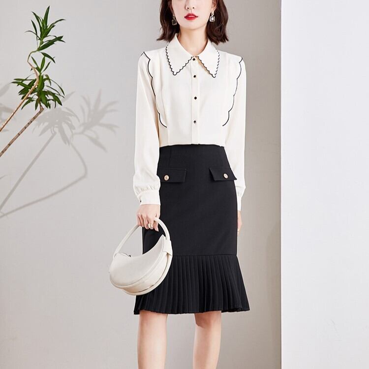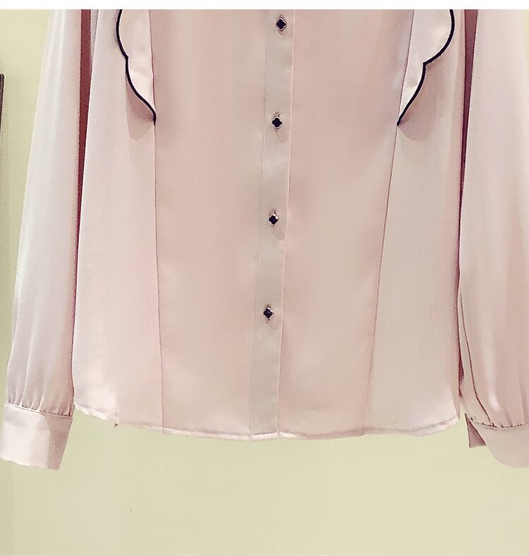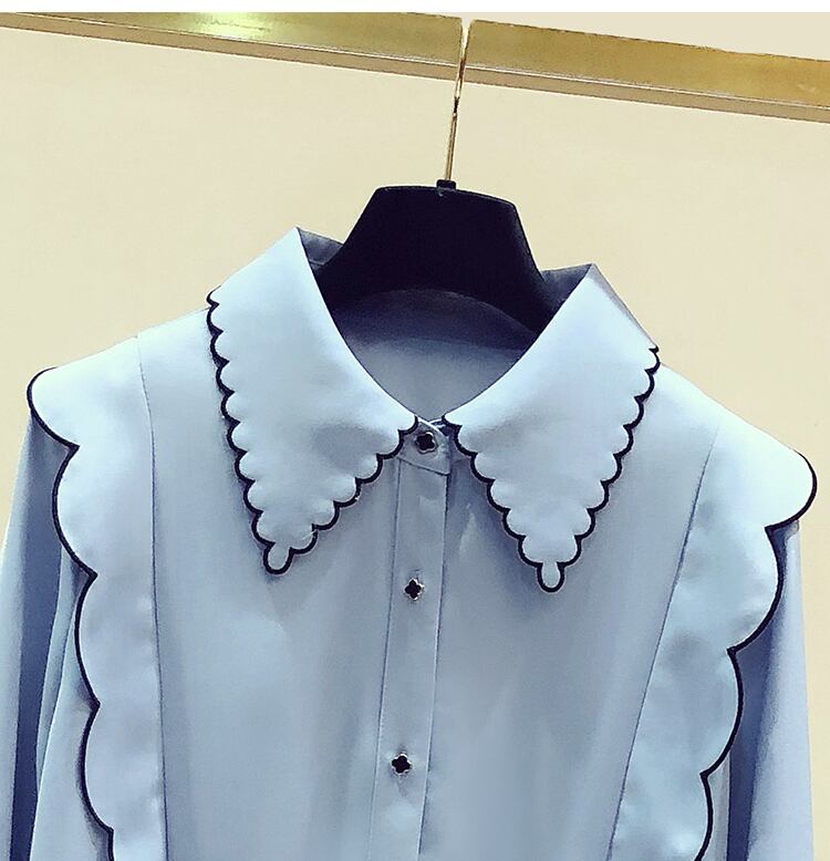 洋風な襟とデザインが特徴のシフォンシャツ。