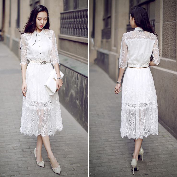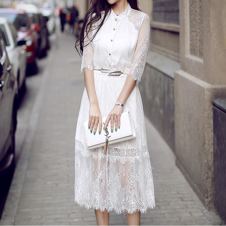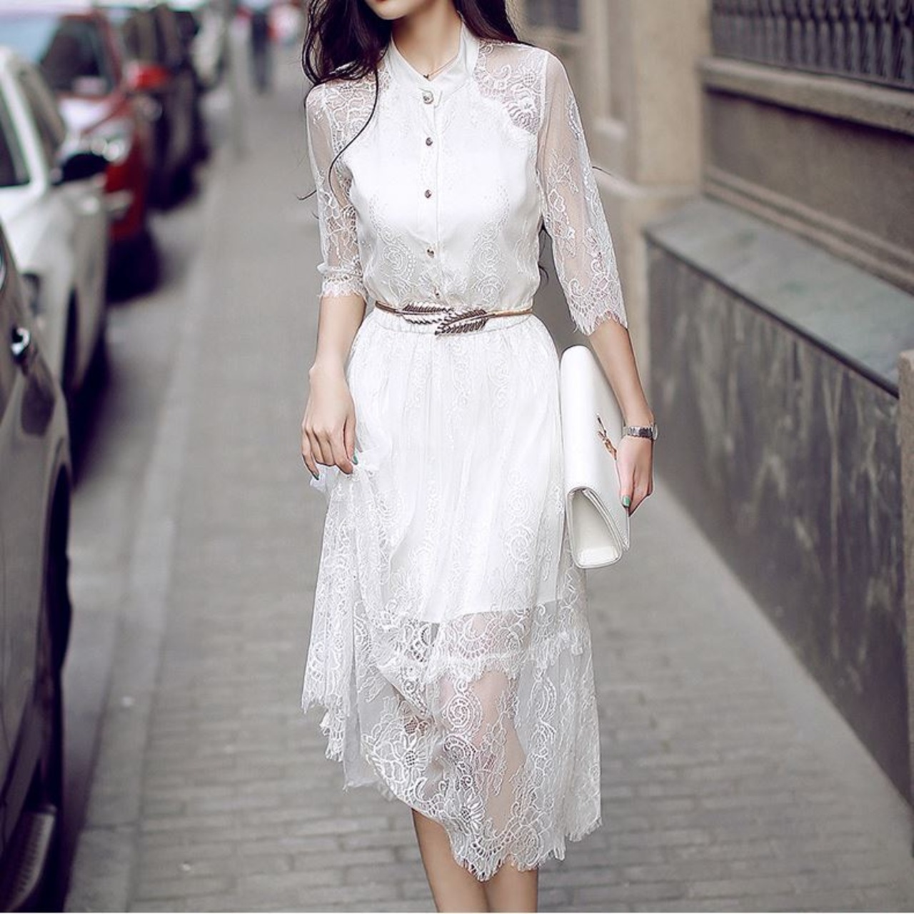 ワンピース レディース ドレス シャツワンピース ロングワンピース ワンピドレス 総レースワンピース レース 総レース ロング丈 バンドカラー 五分袖 プルオーバー 花柄 ハイウエスト ウエストマーク ベルト付き フレア スリム 体型カバー 着痩せ シースルー 透け感 スタイリッシュ オケージョン 細身 おしゃれ 大人 清楚 フォーマル フェミニン 上品 韓国 きれいめ 春 夏 秋 結婚式 二次会 お呼ばれ 着回し パーティー セレモニー ホワイト ブラック 10代 20代 30代 40代 S M L | Raforea