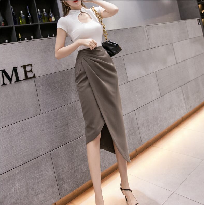 スカート ラップスカート ギャザー イレギュラー ペンシルスカート タイトスカート 膝丈 ひざ丈 膝下 ミモレ ミモレ丈 スリム タイト 細身 Iライン スマート ハイウエスト きれいめ 上品 おしゃれ お洒落 大人女子 こなれ感 エレガント 無地 春 夏 秋 20代 30代 40代 レディース ビジネス OL 通勤 就活 着回し 普段使い S M L XL 黒 ブラック 茶色 ブラウン