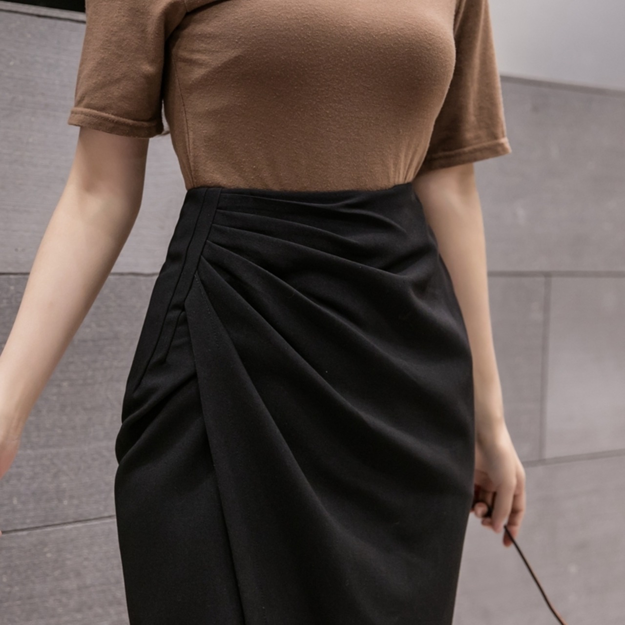 スカート ラップスカート ギャザー イレギュラー ペンシルスカート タイトスカート 膝丈 ひざ丈 膝下 ミモレ ミモレ丈 スリム タイト 細身 Iライン スマート ハイウエスト きれいめ 上品 おしゃれ お洒落 大人女子 こなれ感 エレガント 無地 春 夏 秋 20代 30代 40代 レディース ビジネス OL 通勤 就活 着回し 普段使い S M L XL 黒 ブラック 茶色 ブラウン | Raforea