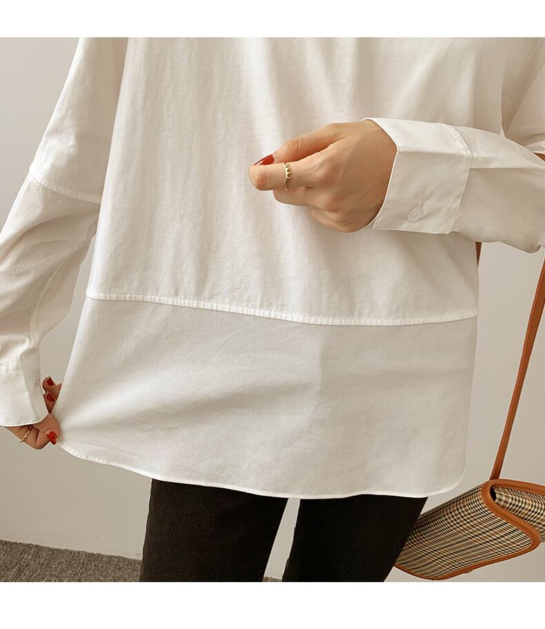 トップス シャツ 白シャツ 白トップス 袖あり 長袖 Uネック ストレート 切り替えデザイン 切り替えデザイン ドッキング 大人可愛い きれいめ シンプル カジュアル 大人 上品 おしゃれ 大人可愛い 大人女子 こなれ感 ラフ 無地 春 秋 冬 10代 20代 30代 40代 50代 レディース 女性用 学生 通学 お出かけ 休日 着回し 重ね着 M L XL 白 ホワイト | Raforea