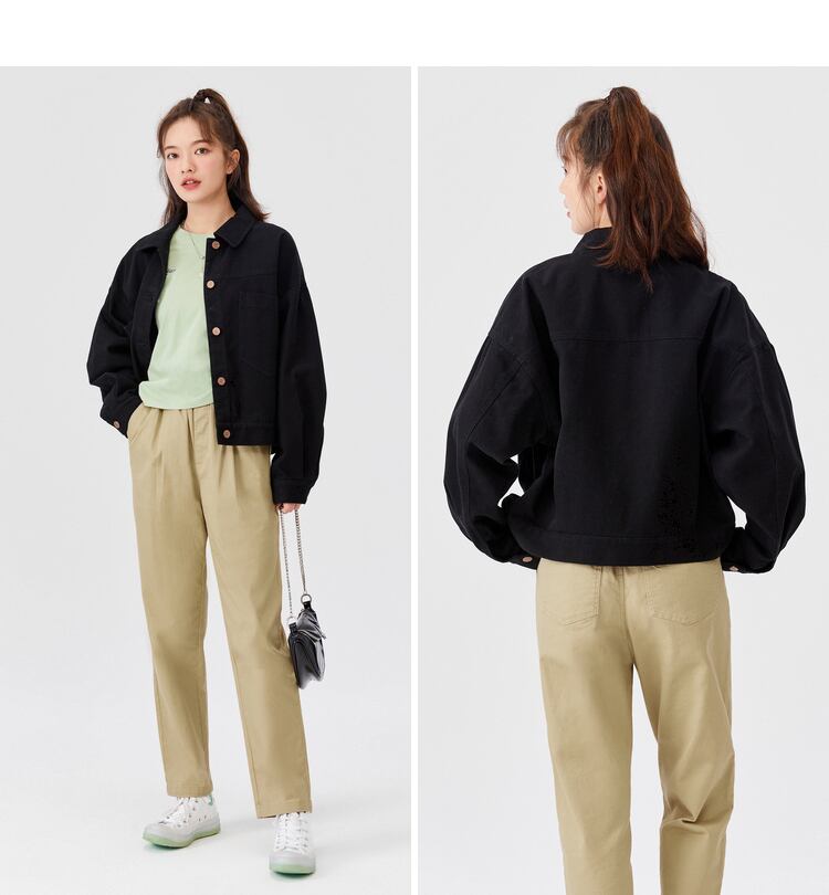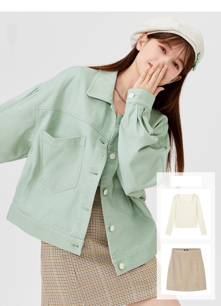 トップス Gジャン フロントボタン 袖あり 長袖 Vネック 襟付き タイト ポケット 前開き デニム かっこいい レトロ アジアン ボーイッシュ 個性的 クール 無地 秋 冬 10代 20代 学生 お出かけ 女子会 普段使い 重ね着 サイズ XS S M L XL 2XL アイスブルー カスタード 色展開 ブラック ベージュ グリーンパウダー ピンクパープル | Raforea