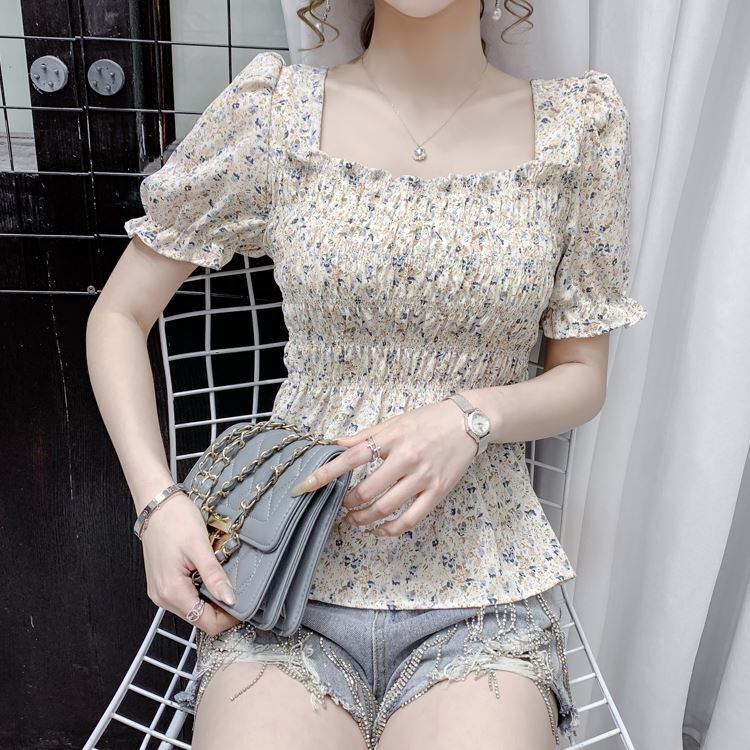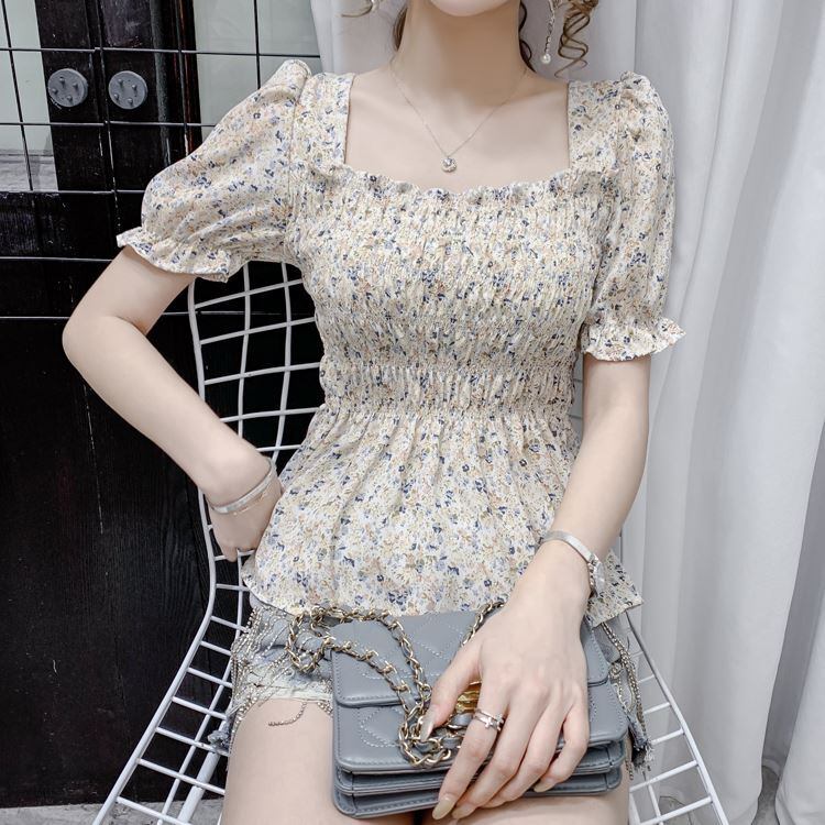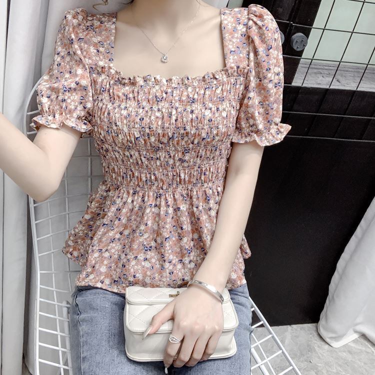 トップス レディース シャツ ブラウス プルオーバー シフォン 袖あり 半袖 スクエアネック パフスリーブ 花柄 小花柄 レトロ ベーシック トレンド ペプラム シャーリング スマート 細身 スタイリッシュ バックリボン フレア ドロップショルダー 体型カバー 着痩せ 薄手 大人可愛い かわいい カジュアル フェミニン ガーリー 韓国 キュート おしゃれ 上品 清楚 きちんと感 春 夏 秋 お出かけ デート 女子会 普段着 普段使い 着回し リゾート ブラック グリーン ベージュ ピンク S M L | Raforea