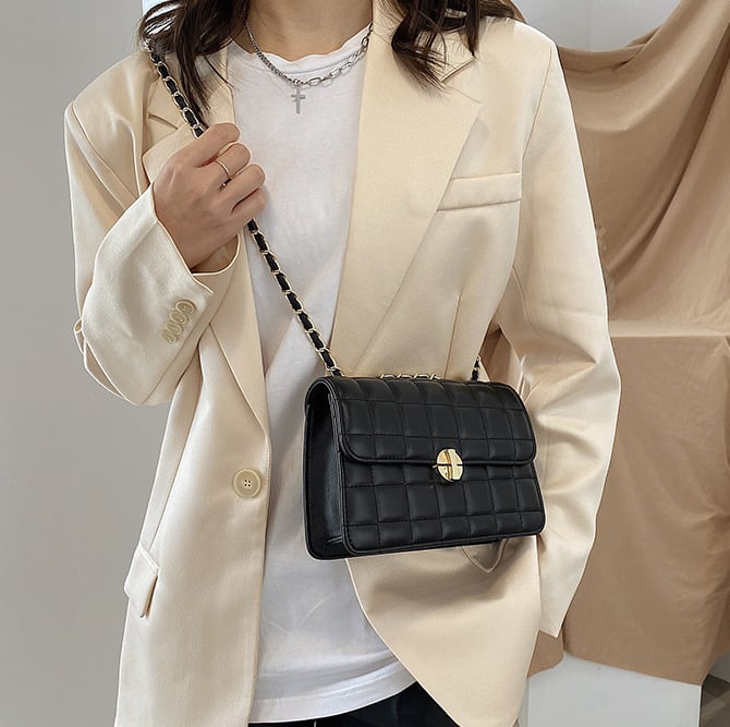 ソフトな合皮にキルティング加工を施したミニショルダーバッグ。チェーンショルダーがデザインポイントです。シックなデザインなのでオールシーズン活躍できるアイテムです。