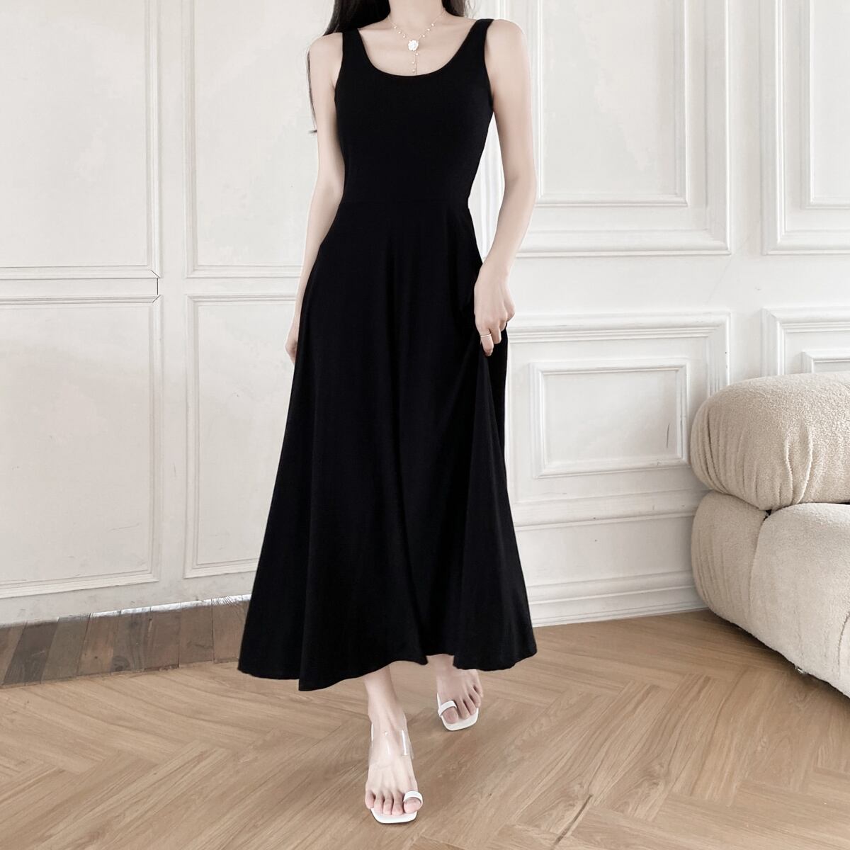 タンクトップワンピース ワンピース フレアスカート ワンピドレス ロング丈 袖なし ノースリーブ ラウンドネック 襟なし フレア 伸縮性 かわいい 大人可愛い きれいめ シンプル 大人 上品 おしゃれ かっこいい レトロ 大人可愛い 大人女子 こなれ感 ラフ クール セクシー モダン 主役級 とろみ感 抜け感 無地 夏 レディース ビジネス OL 通勤 学生 通学 デート お出かけ 女子会 休日 レストラン S M L XL 2XL 黒 ブラック 大人カラー | Raforea