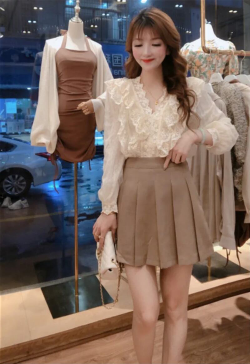 色展開 ベージュ(ブラウス) カーキ(スカート)