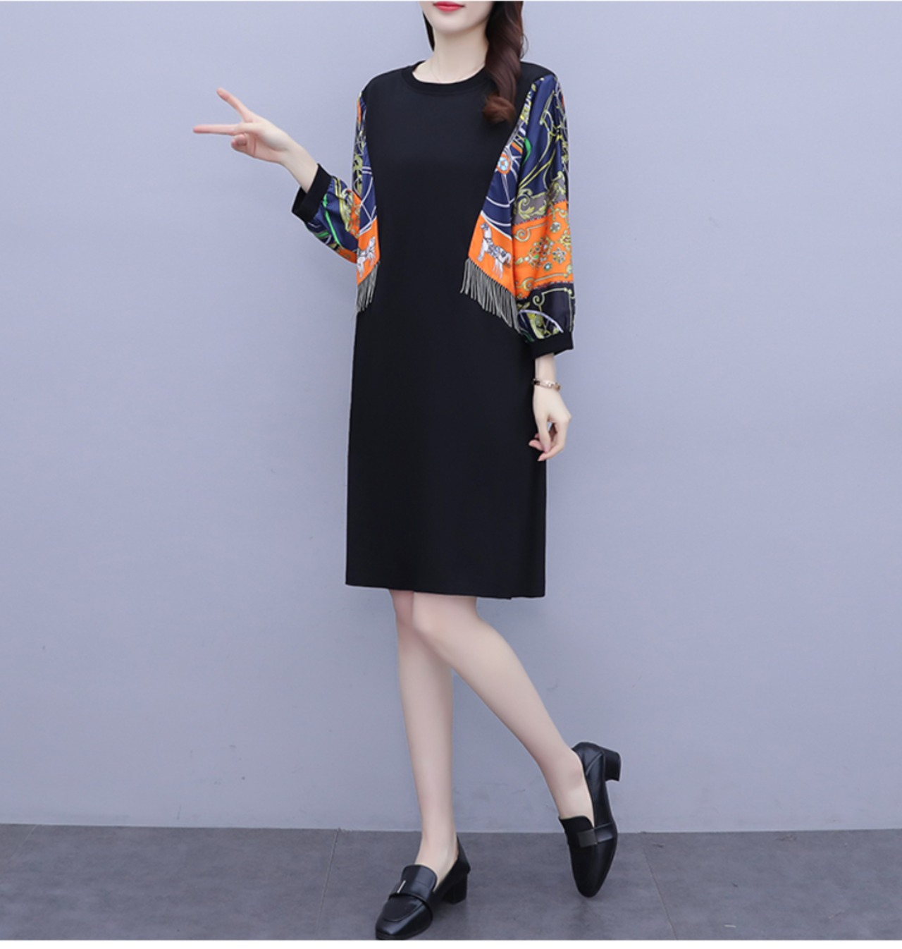 ワンピース プルオーバー ワンピドレス 膝丈 ひざ丈 ミディアム丈 袖あり 長袖 ラウンドネック 襟なし ストレート 切り替えデザイン かわいい 大人可愛い きれいめ シンプル 大人 上品 おしゃれ お洒落 レトロ エスニック 大人可愛い 大人女子 こなれ感 エレガント モダン 主役級 存在感 柄 プリント 春 秋 レディース ビジネス OL 通勤 学生 通学 体系カバー L XL 2XL 3XL 4XL 5XL 大きいサイズ ビッグサイズ 黒 ブラック | Raforea