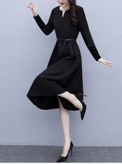 ワンピース ワンピドレス 膝丈 ひざ丈 袖あり 長袖 襟なし フレア Aライン ベルト ウエストマーク ハイウエスト かわいい 大人可愛い きれいめ シンプル 大人 上品 おしゃれ お洒落 エキゾチック 大人可愛い 大人女子 こなれ感 エレガント モダン 主役級 存在感 フォーマル 無地 春 秋 レディース ビジネス OL 通勤 学生 通学 デート お出かけ 女子会 休日 モテ M L XL 2XL 3XL 4XL 大きいサイズ 黒 ブラック モノトーン | Raforea