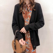 ストレッチ性のあるゆったりした季節の羽織りとして重宝するVネックカーディガンです。緩すぎずピッタリし過ぎない程よいゆとりがあり、重ね着してもスッキリ見えします。着丈は長すぎないヒップが隠れる丈。通勤通学問わず活躍すること間違いなしな一枚。