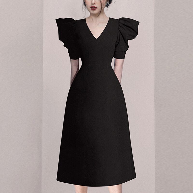 ワンピース ワンピドレス 膝下 袖なし ノースリーブ Vネック フレア スリム 大人可愛い きれいめ シンプル 大人 上品 おしゃれ かっこいい 大人可愛い 大人女子 個性的 クール モード系 セクシー エレガント 無地 オールシーズン 卒業式 謝恩会 結婚式 二次会 10代 20代 30代 40代 レディース 女性用 パーティー イベント ホテル レストラン S M L XL 黒 | Raforea