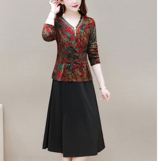 ワンピース フレアワンピース 膝丈 ひざ丈 袖あり 長袖 Vネック ペプラム Aライン フリル ウエストマーク かわいい 大人可愛い きれいめ 上品 おしゃれ 大人女子 個性的 クール セクシー エレガント モダン 花柄 秋 冬 30代 40代 50代 60代 レディース ペア お出かけ 女子会 パーティー イベント リゾート ホテル レストラン XL 2XL 3XL 4XL 5XL 大きいサイズ 大きい ビッグサイズ 黒 ブラック 赤 レッド オレンジ | Raforea