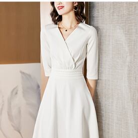 ワンピース フレアワンピース 膝丈 ひざ丈 袖あり 5分袖 Vネック フレア スリム タイト 細身 かわいい 大人可愛い きれいめ シンプル カジュアル 上品 おしゃれ 大人可愛い 大人女子 無地 春 秋 入学式 入園式 卒業式 卒園式 謝恩会 20代 30代 40代 レディース 女性用 デート お出かけ 女子会 パーティー イベント リゾート ホテル レストラン トレンド インスタ映え S M L XL 2XL 3XL 白 ホワイト | Raforea