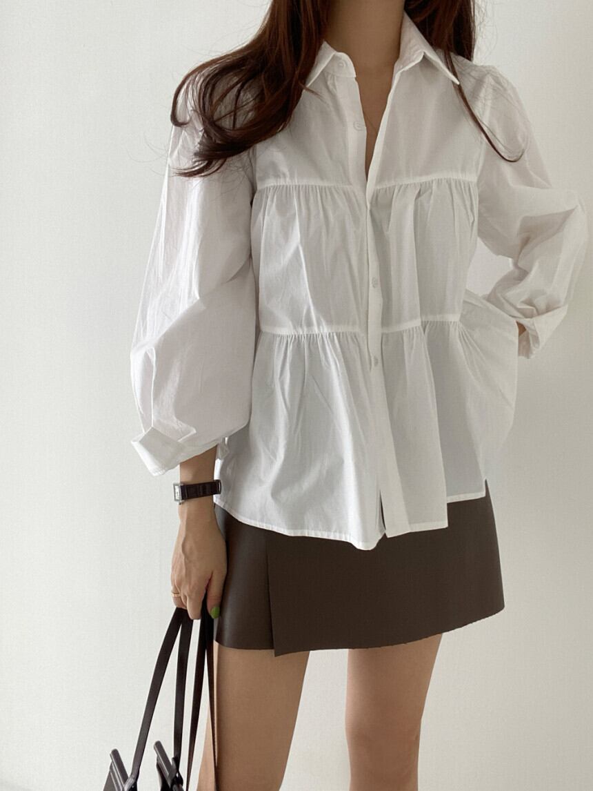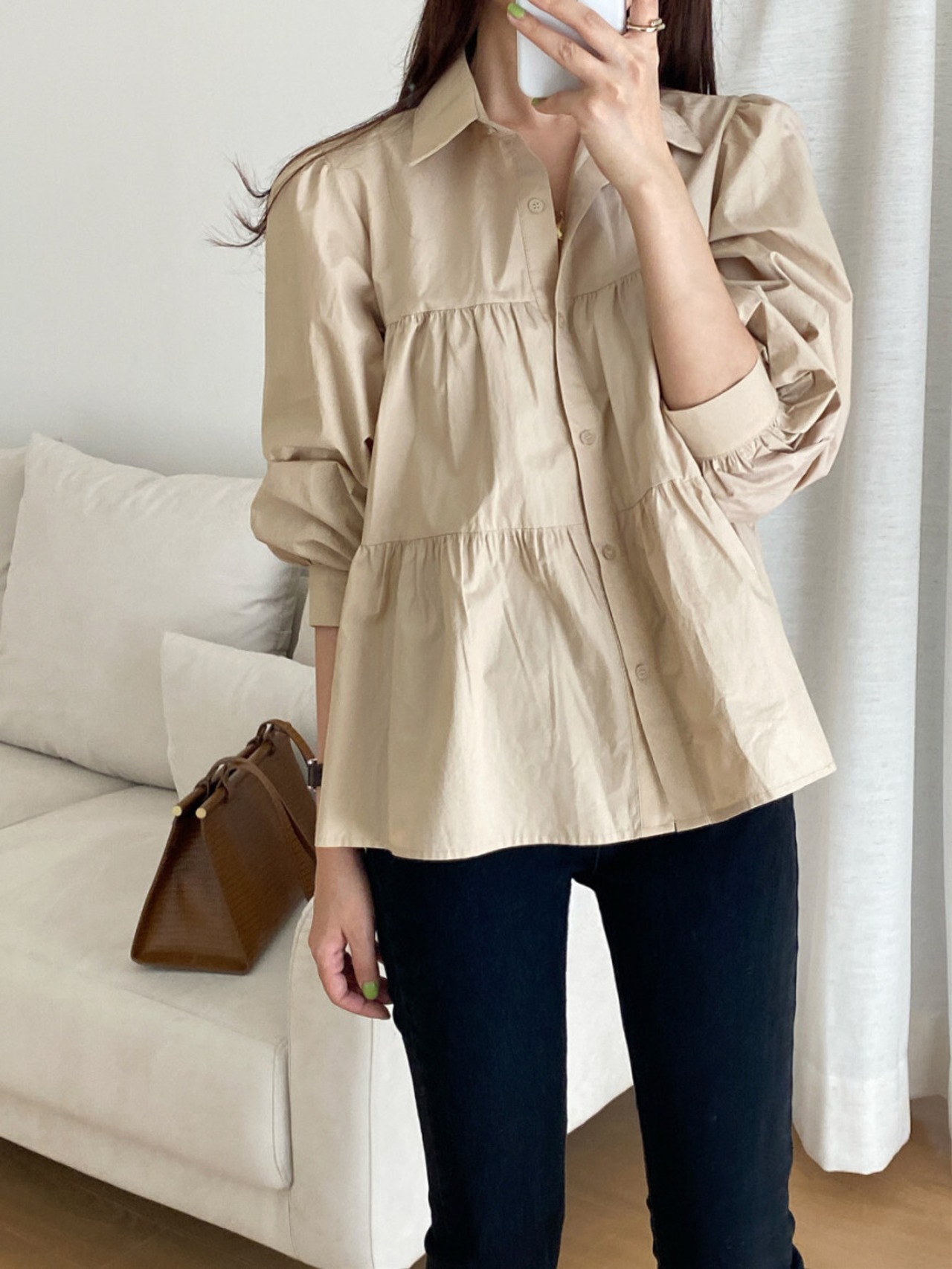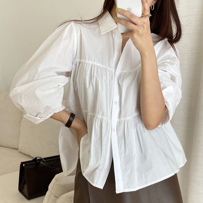 トップス シャツ ブラウス 袖あり 7分袖 七分袖 ボリューム袖 パフスリーブ 襟付き 切り替えデザイン 前開き かわいい 大人可愛い きれいめ シンプル カジュアル 大人 上品 おしゃれ お洒落 かっこいい レトロ 大人可愛い 大人女子 こなれ感 ラフ ラブリー キュート ガーリー クール モード系 モダン 抜け感 無地 春 夏 レディース ビジネス OL 通勤 学生 通学 デート お出かけ 女子会 休日 リゾート ガーデン モテ フリーサイズ 白 ホワイト ベージュ | Raforea